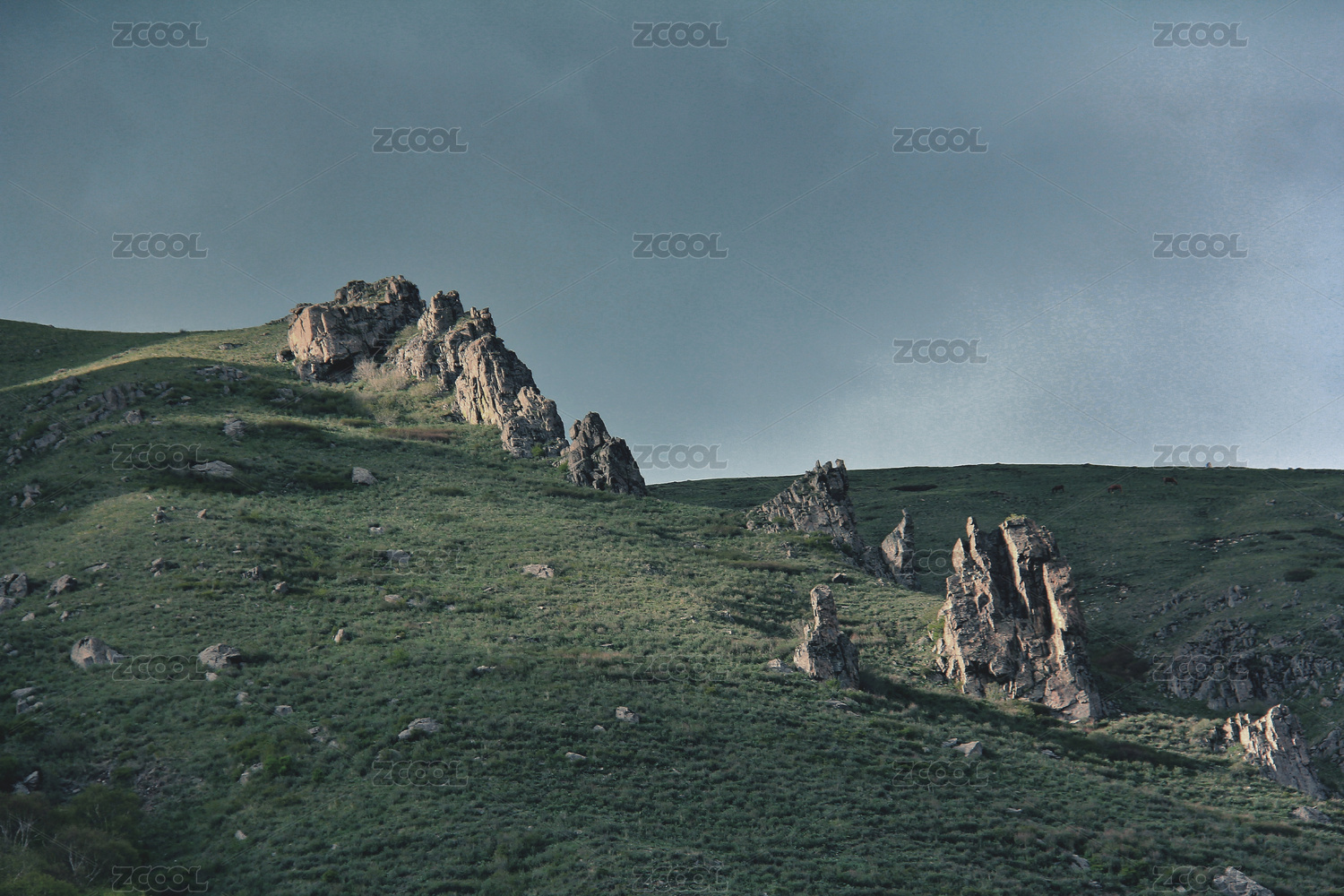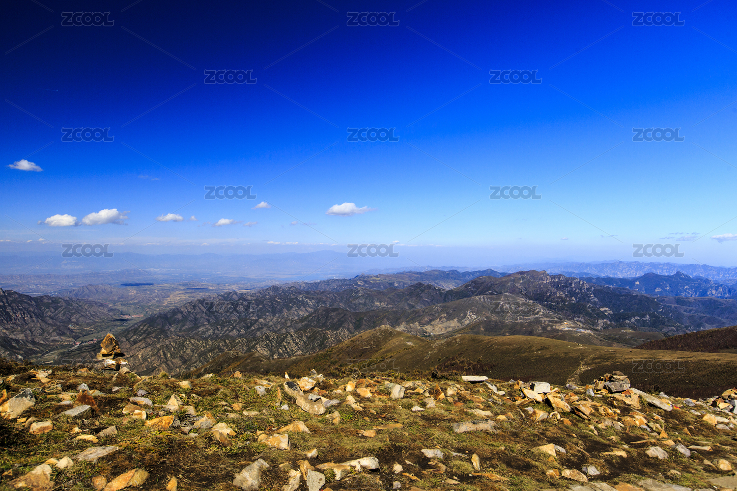 陽光照在北京最高峰靈山主峰的山坡石堆上