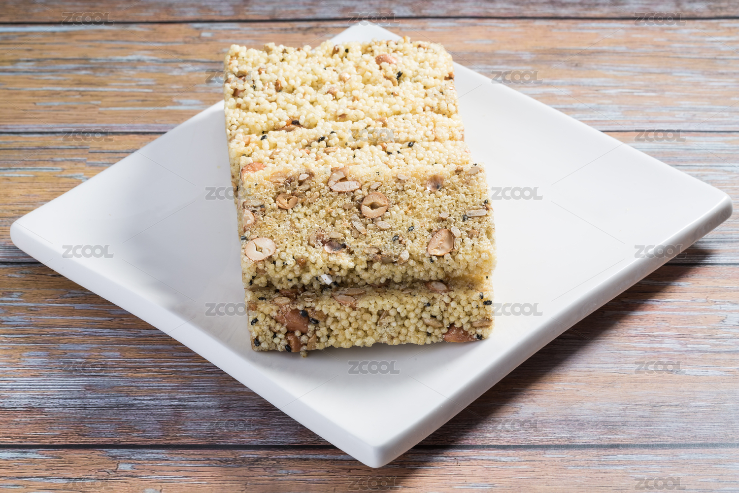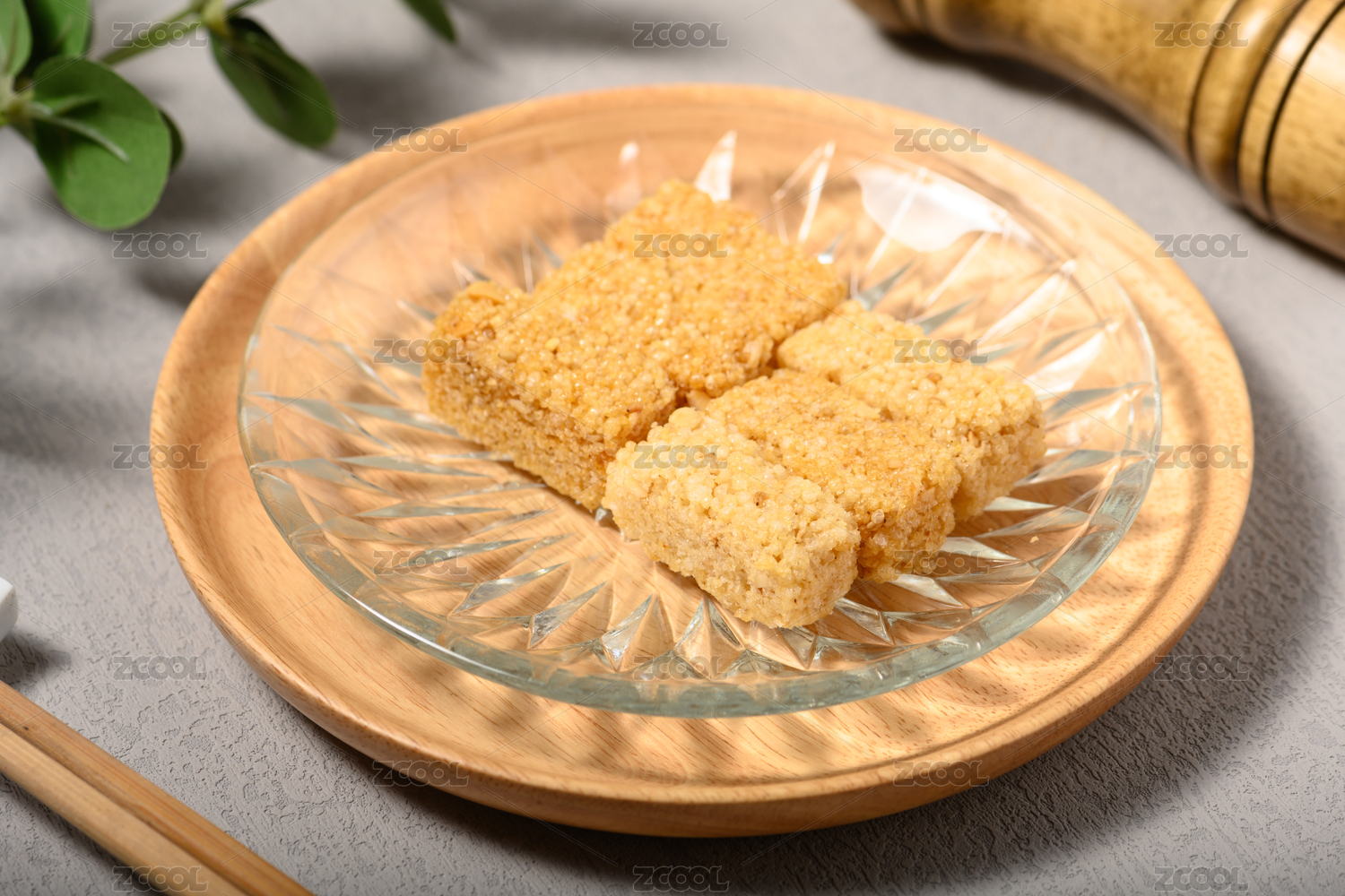 桌面上的盤子里的美味可口的小米酥