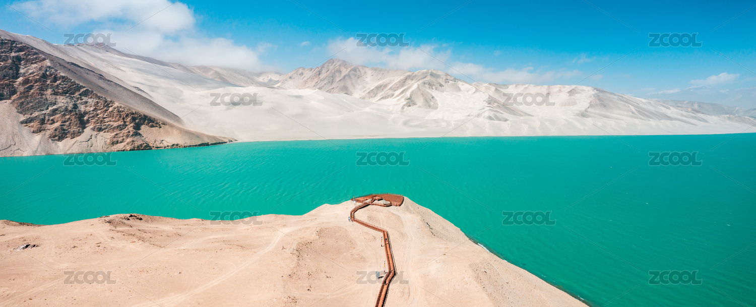 中國(guó)新疆的昆侖山和白沙山和白沙湖