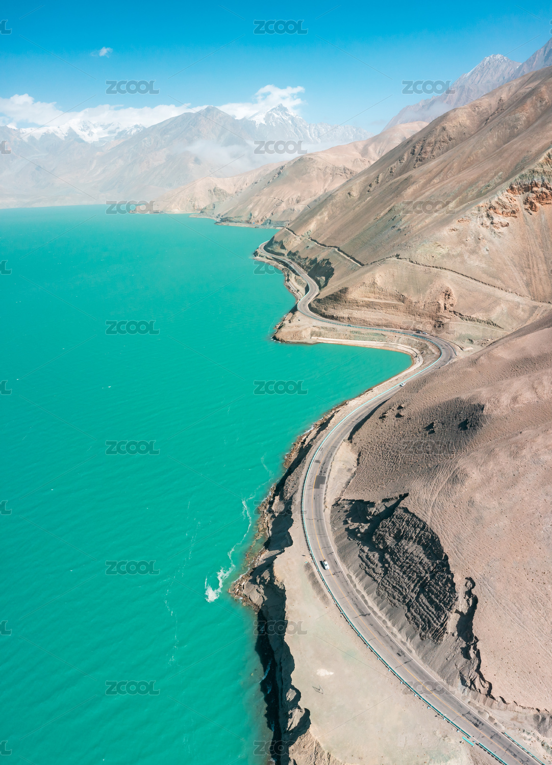 中國(guó)新疆阿克陶縣白沙湖雪山公路湖泊