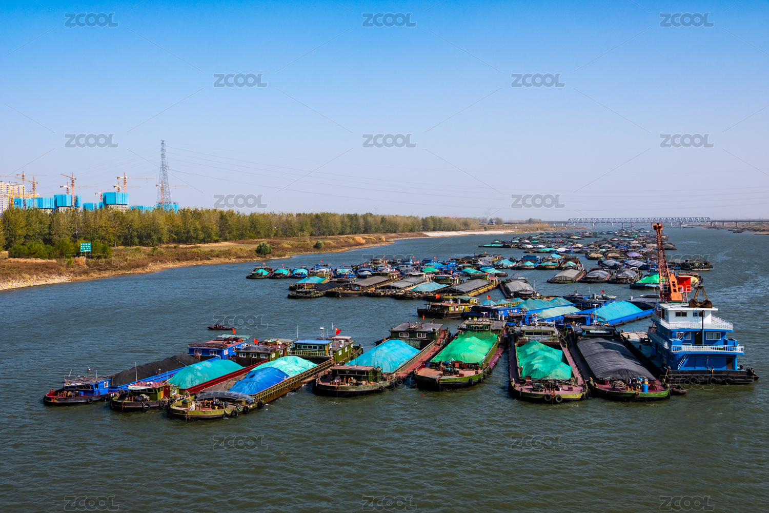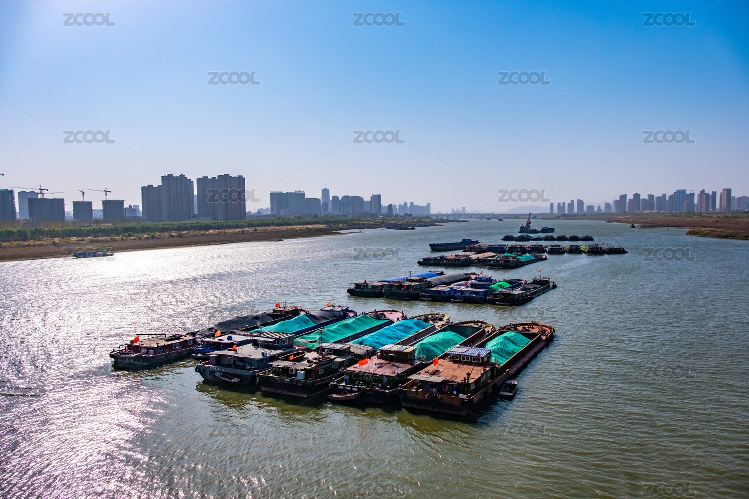 夏日停靠在淮河的中國安徽省蚌埠市多艘漁船