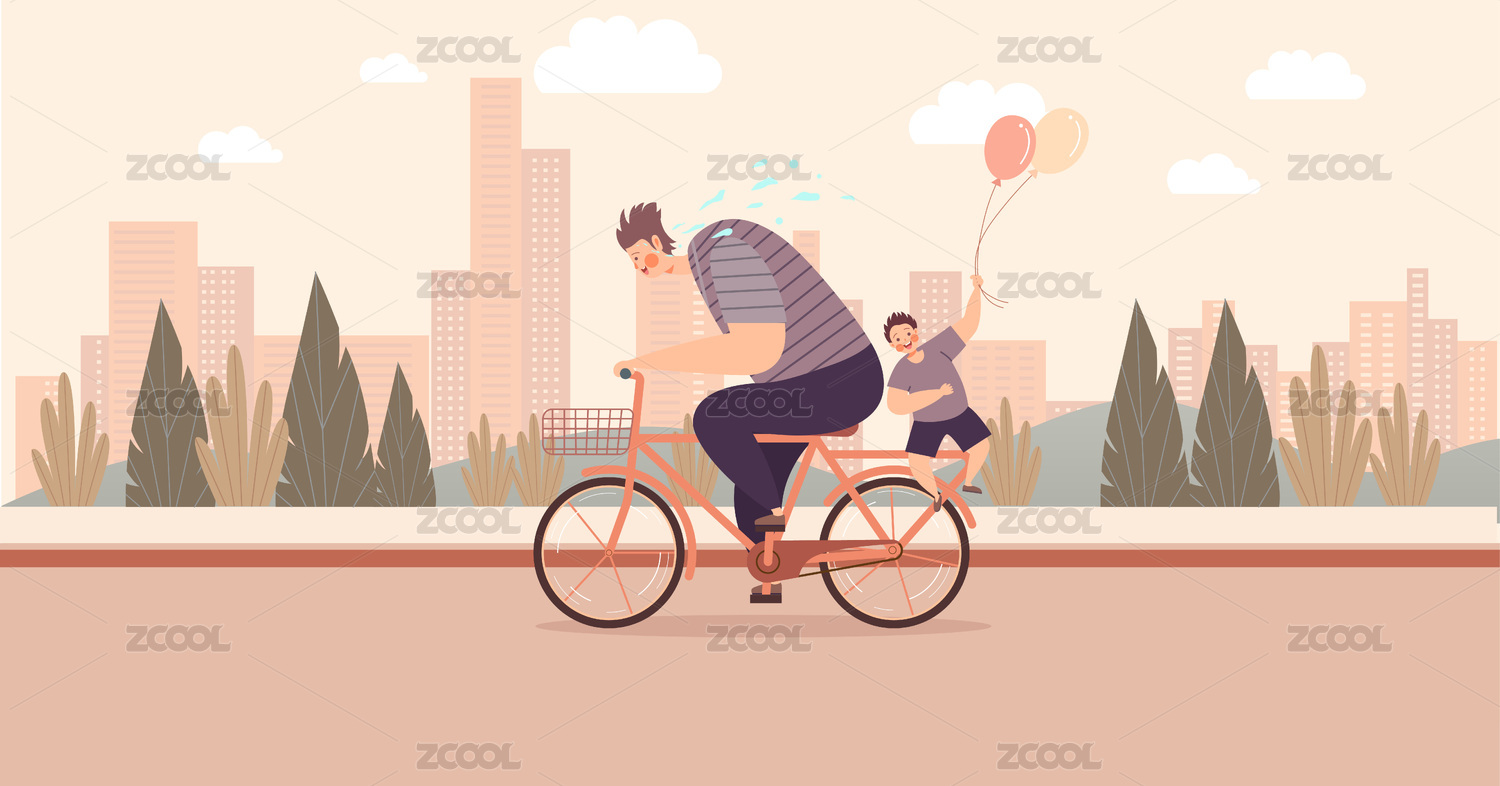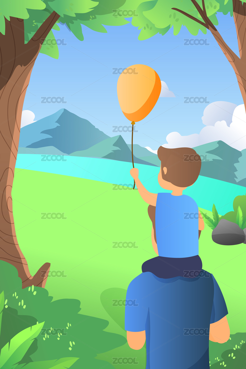 爸爸兒子戶外玩耍擊掌慶祝父親節(jié) 手繪插畫