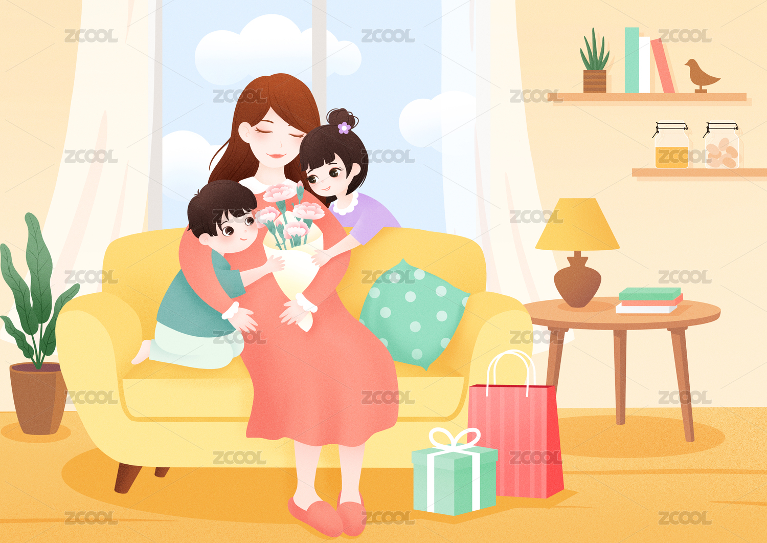 母親節(jié)兒子女兒給媽媽送花送禮物