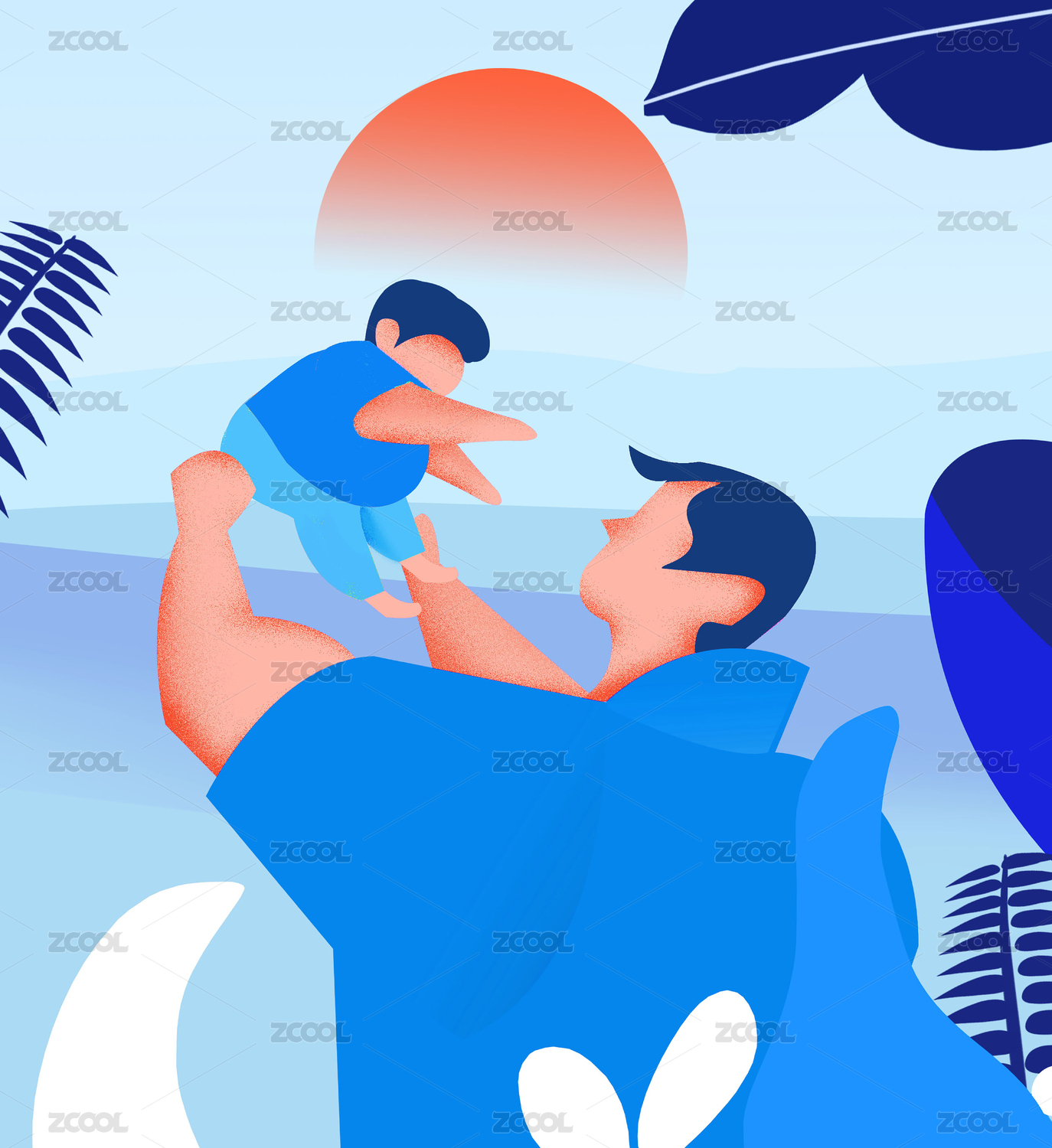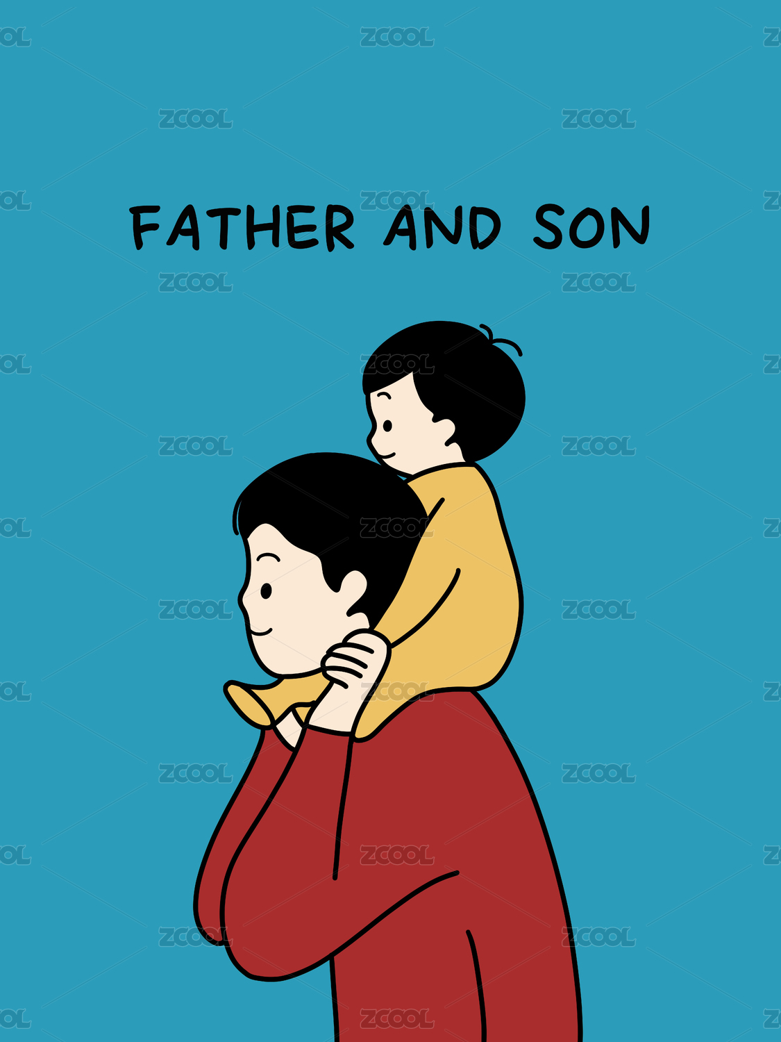 手繪強(qiáng)壯的父親抱著兒子最溫暖最幸福的的時(shí)光