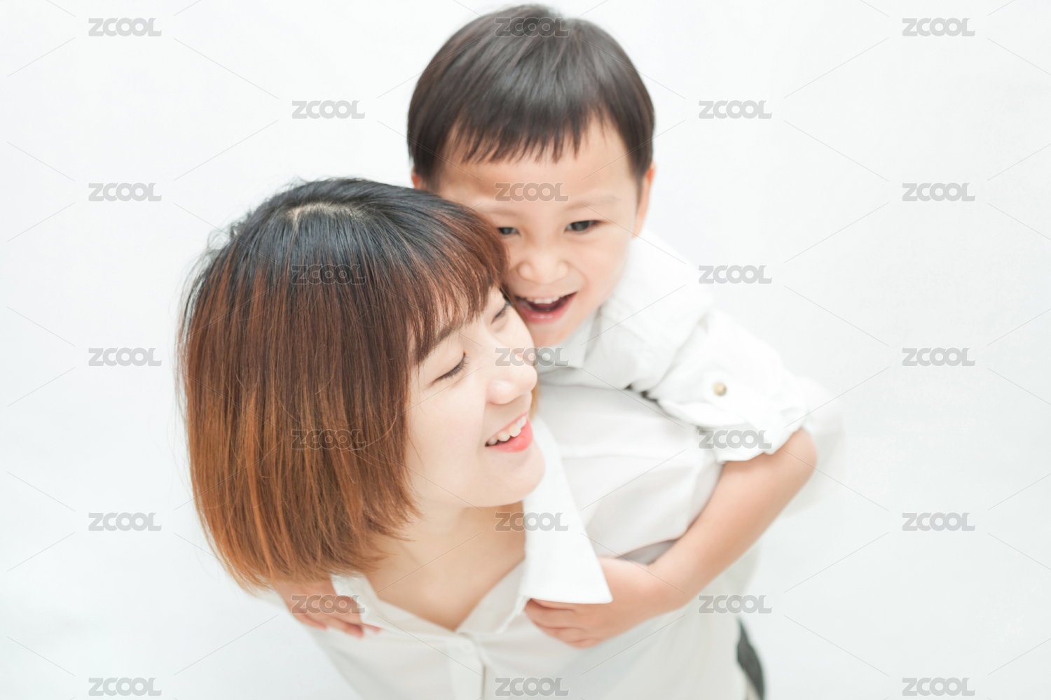 歡樂幸福的一對年輕母子/年輕的媽媽和年少的兒子