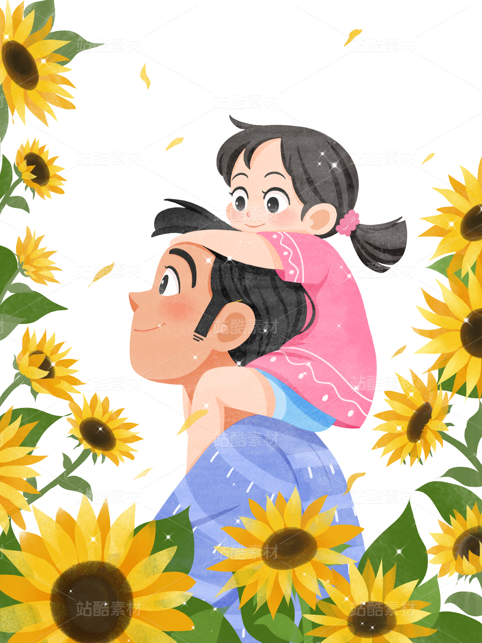 卡通 插畫 爸爸 女兒