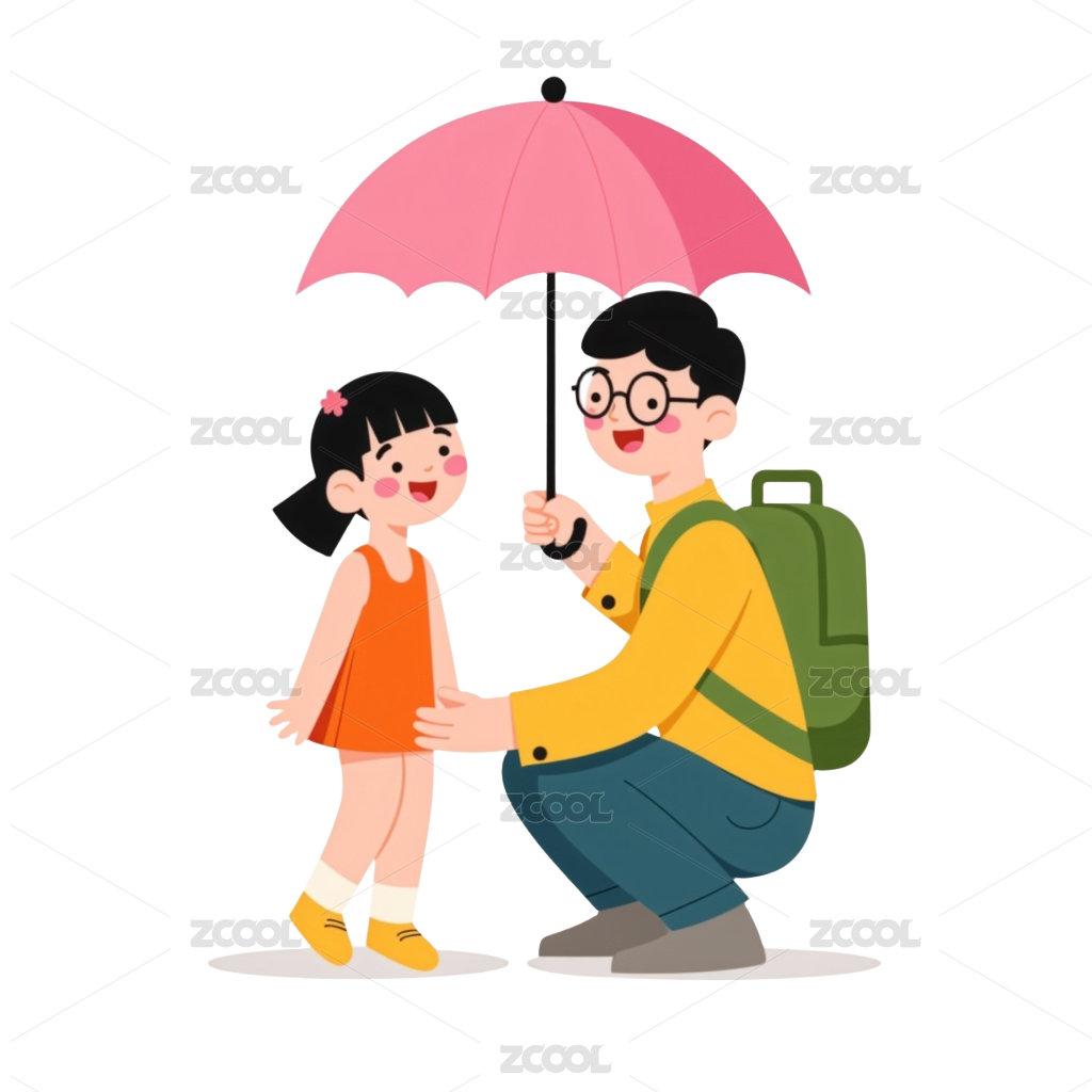「愛」父親節(jié)-父親拿著傘接女兒放學(xué)