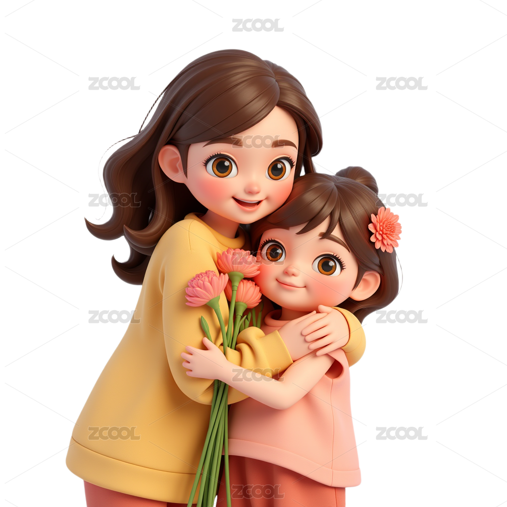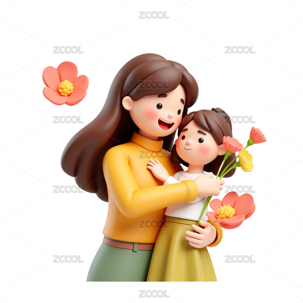 母親節(jié)慈愛的媽媽擁抱女兒Png免摳素材3D樹脂風(fēng)格
