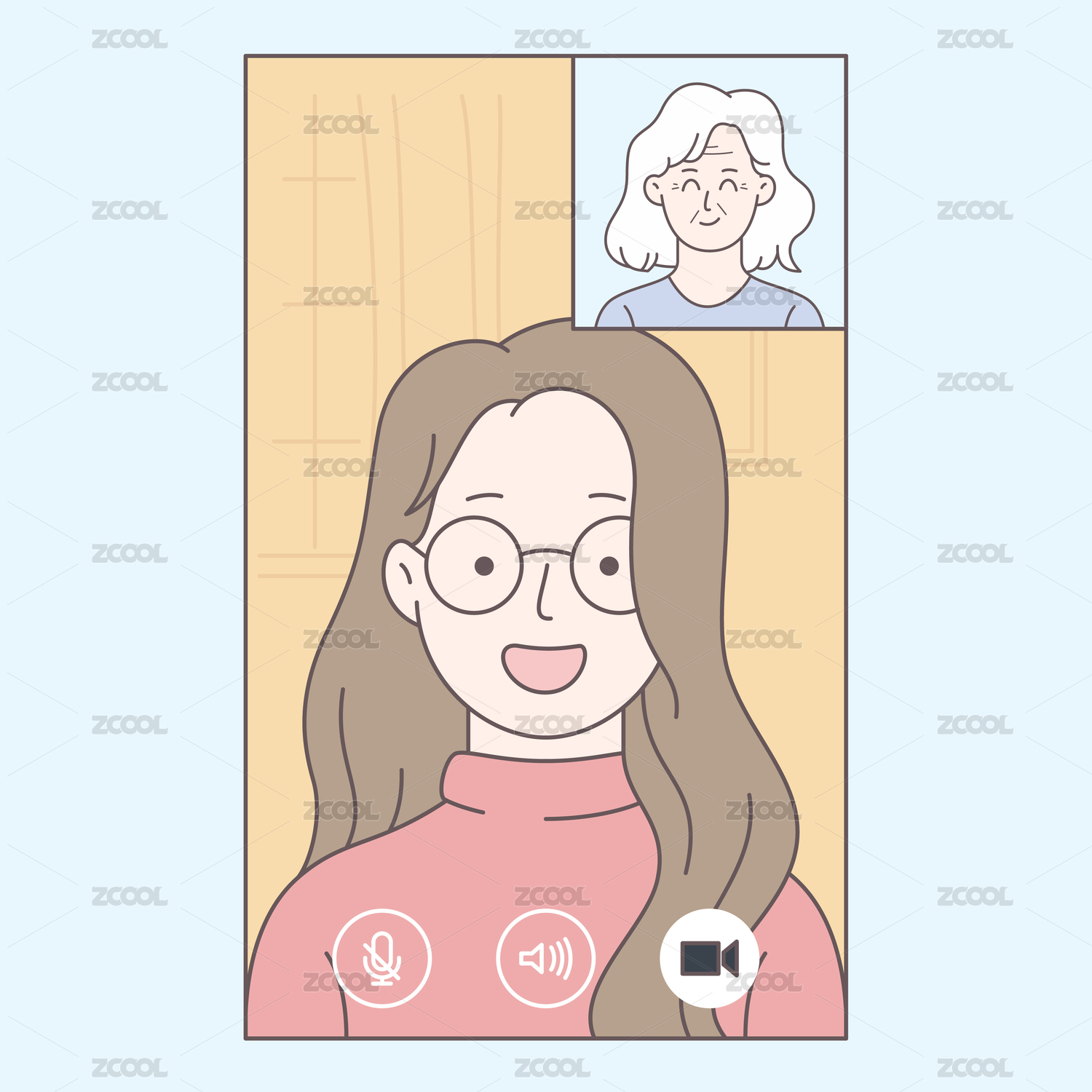 女兒和媽媽視頻聊天矢量插畫