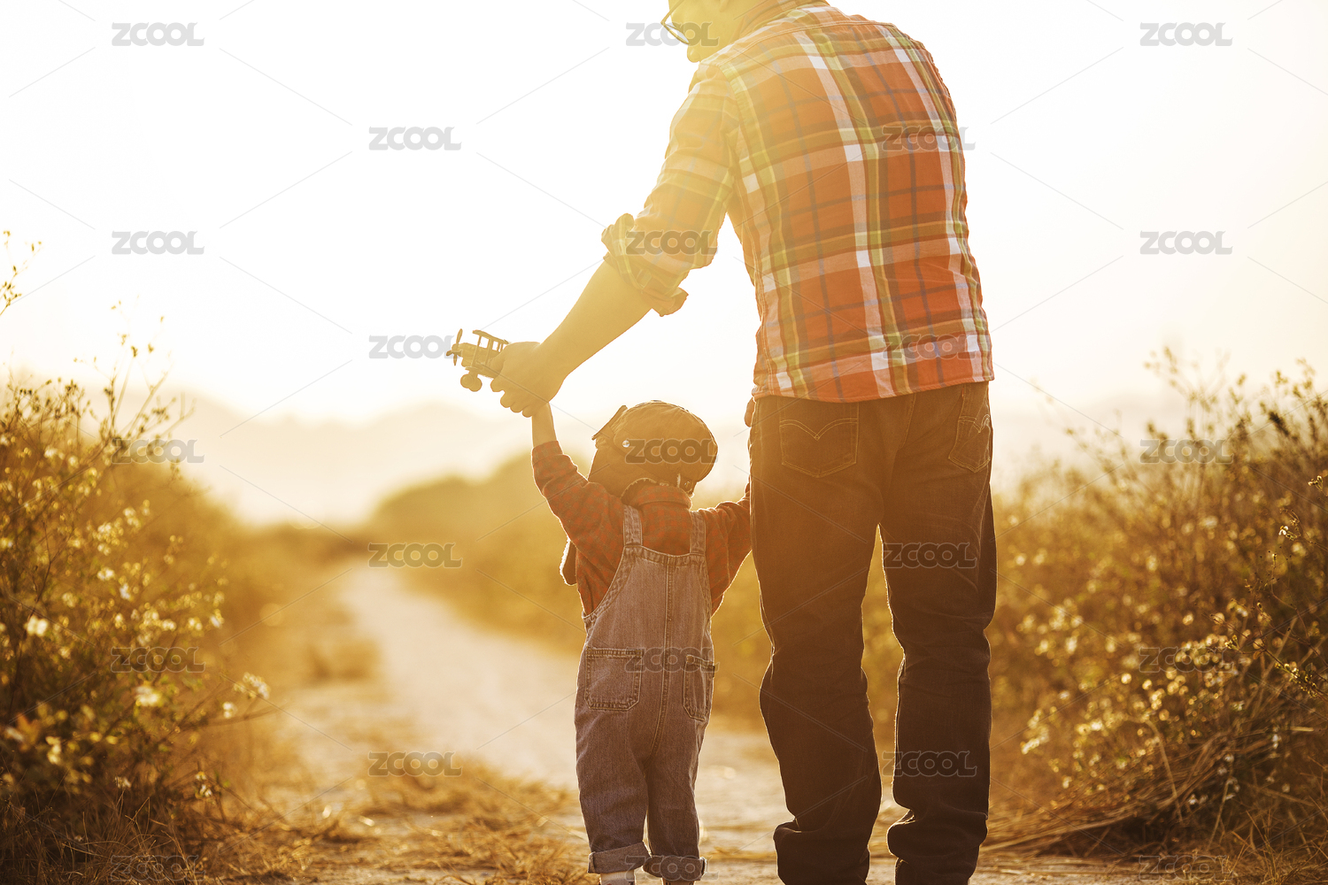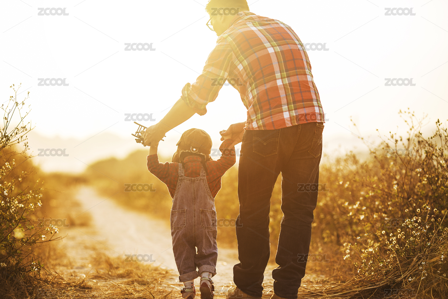 父親帶著女兒在田野玩耍