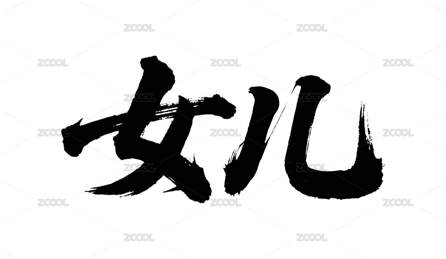 女兒矢量書法手寫毛筆字