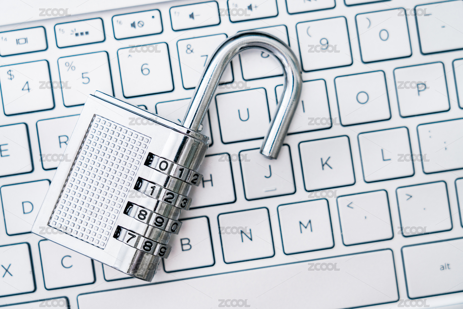 一把打開(kāi)的鎖子放在電腦鍵盤(pán)上