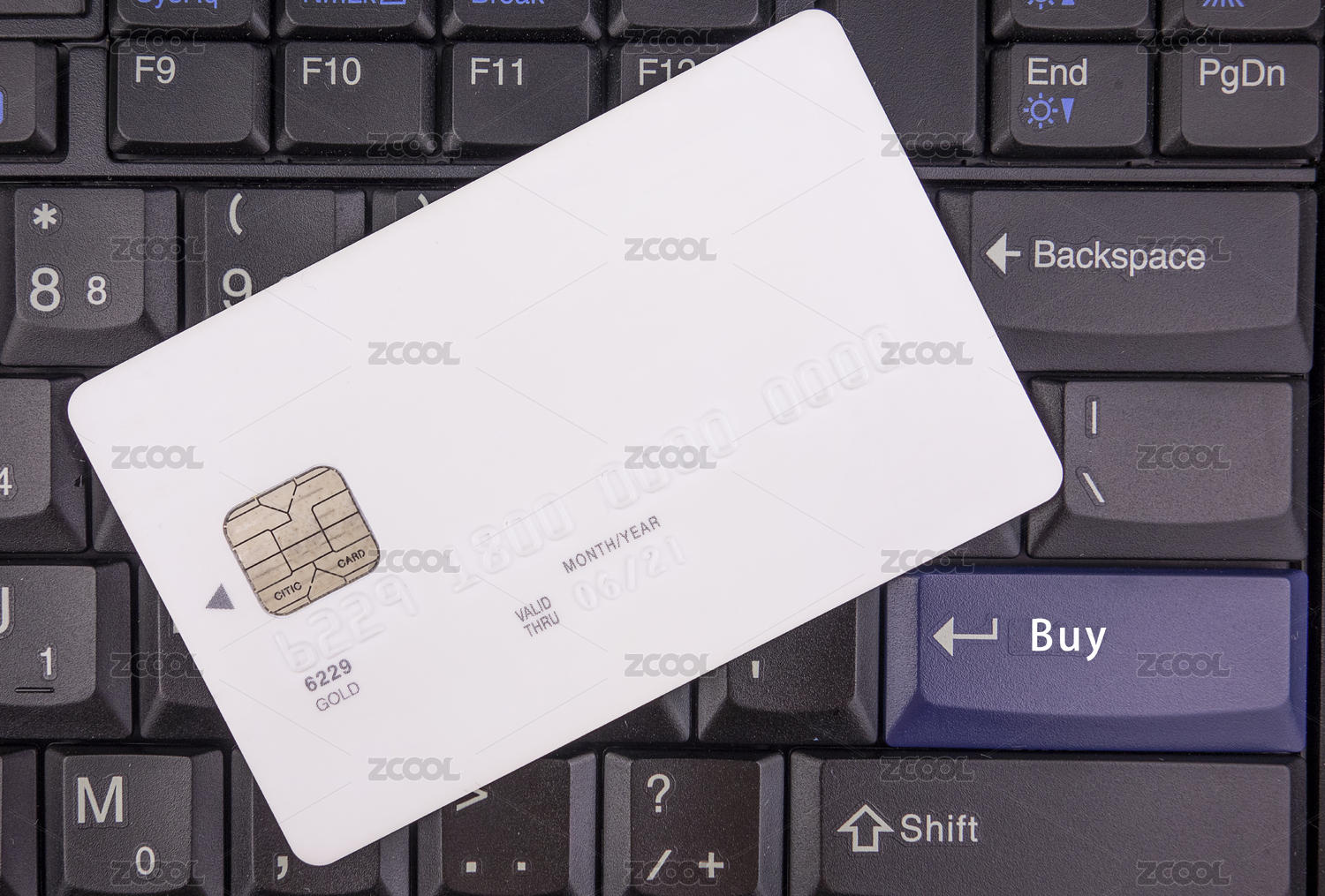 電腦鍵盤(pán)上放著一張白色的銀行卡