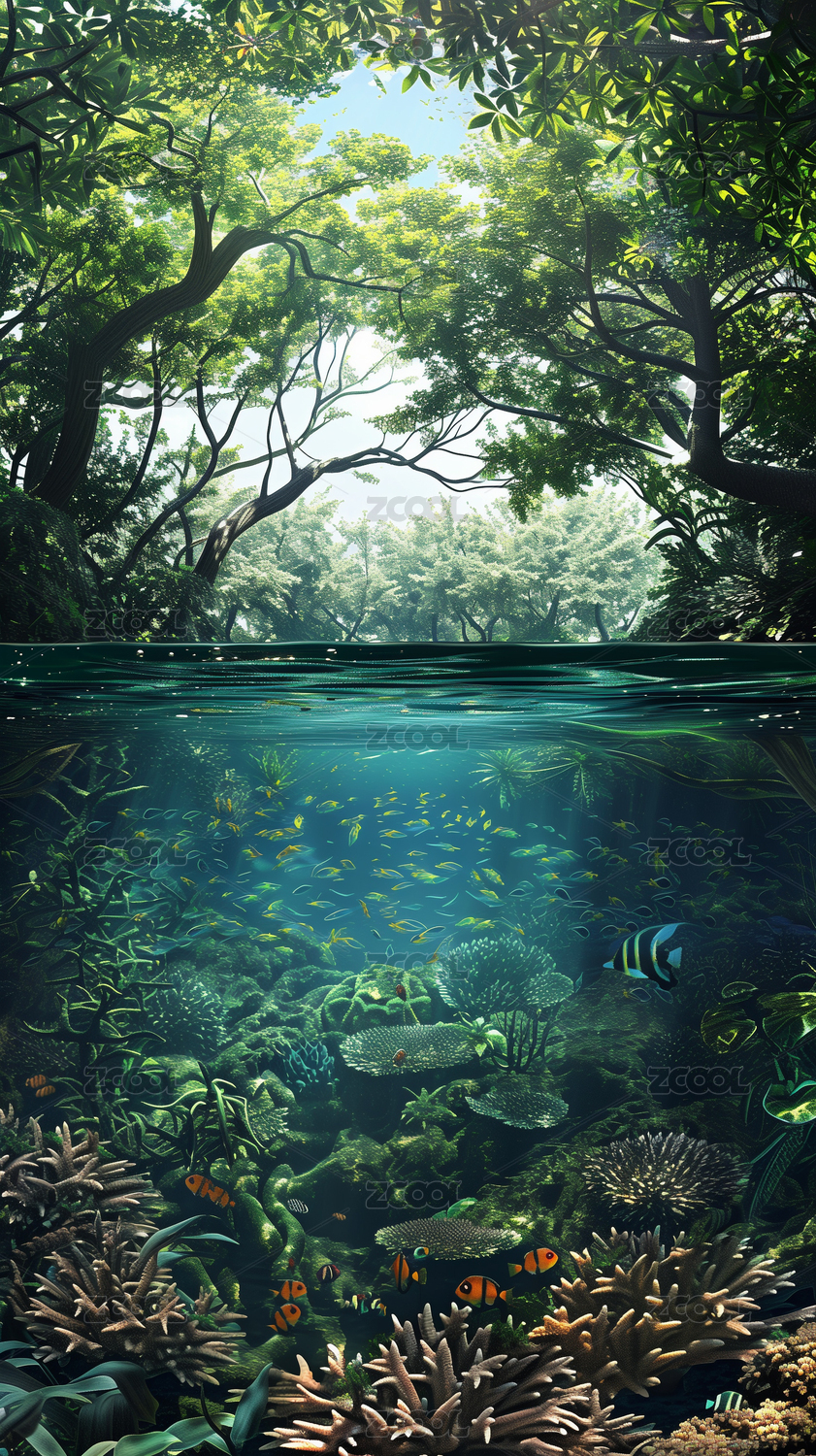 紅樹(shù)林和水杉的夏天熱帶雨林風(fēng)景壁紙插畫(huà)