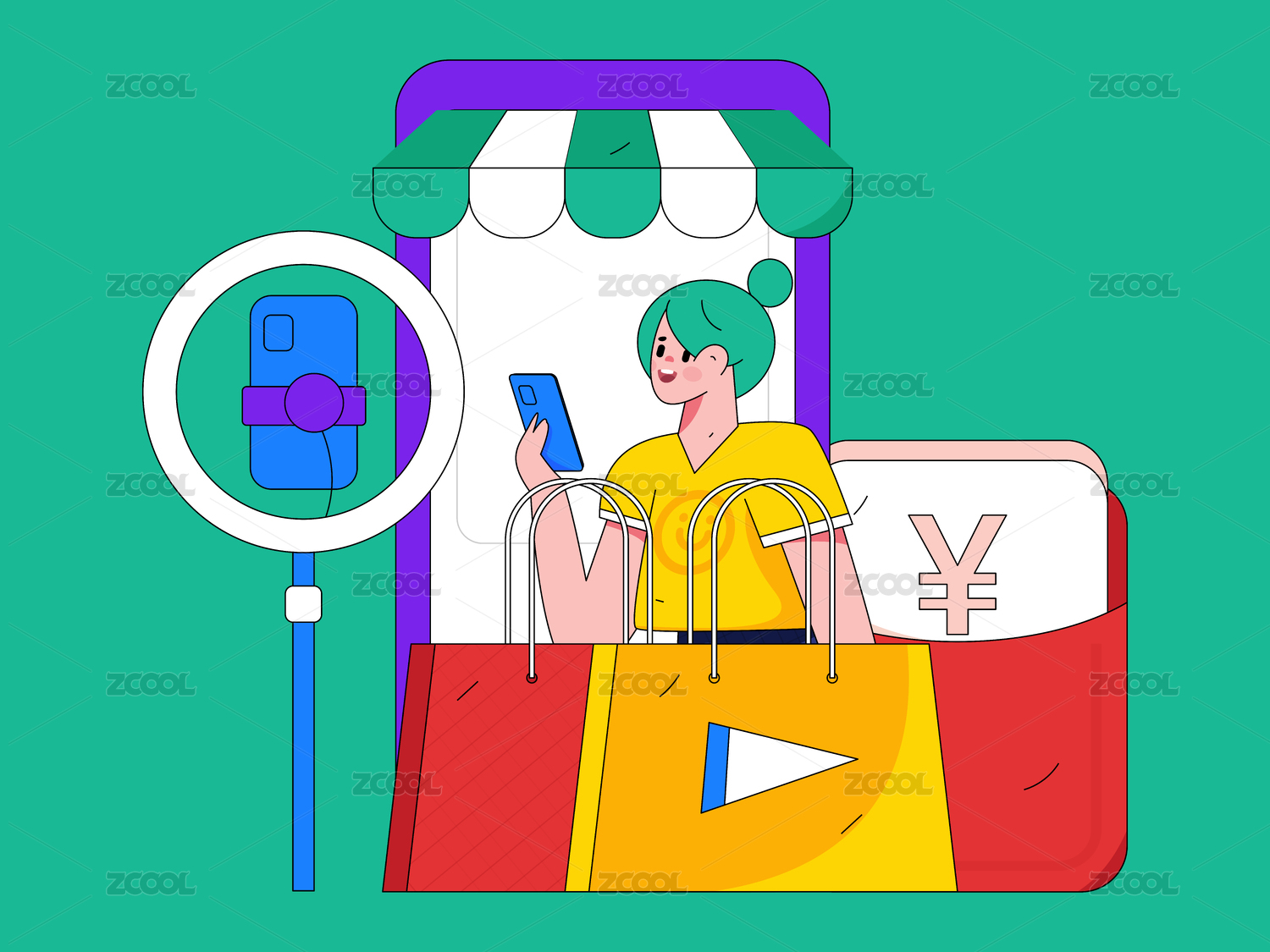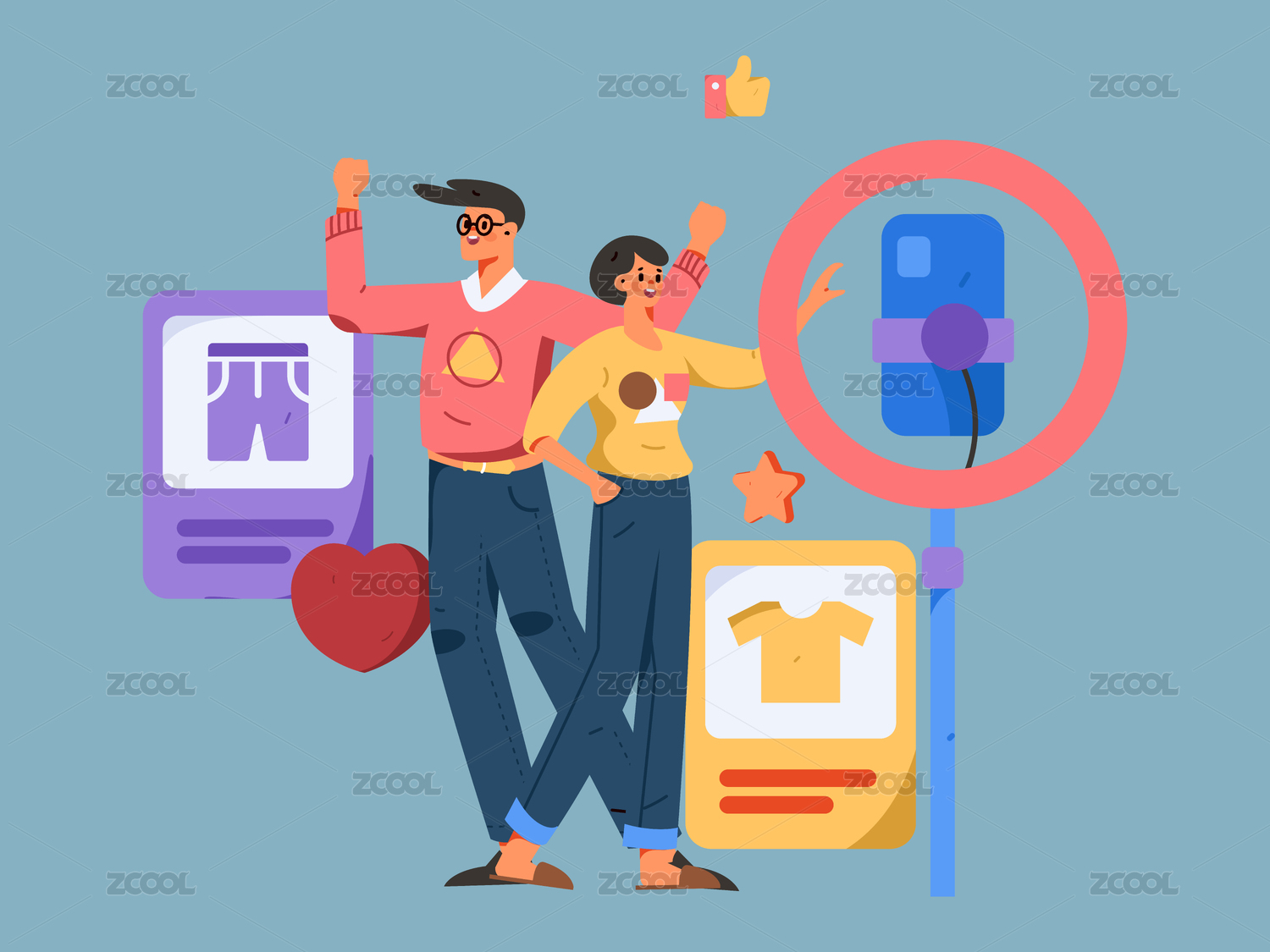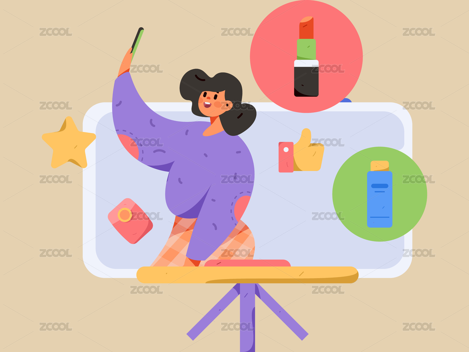 直播帶貨的網(wǎng)紅電商人物矢量互聯(lián)網(wǎng)插畫(huà)