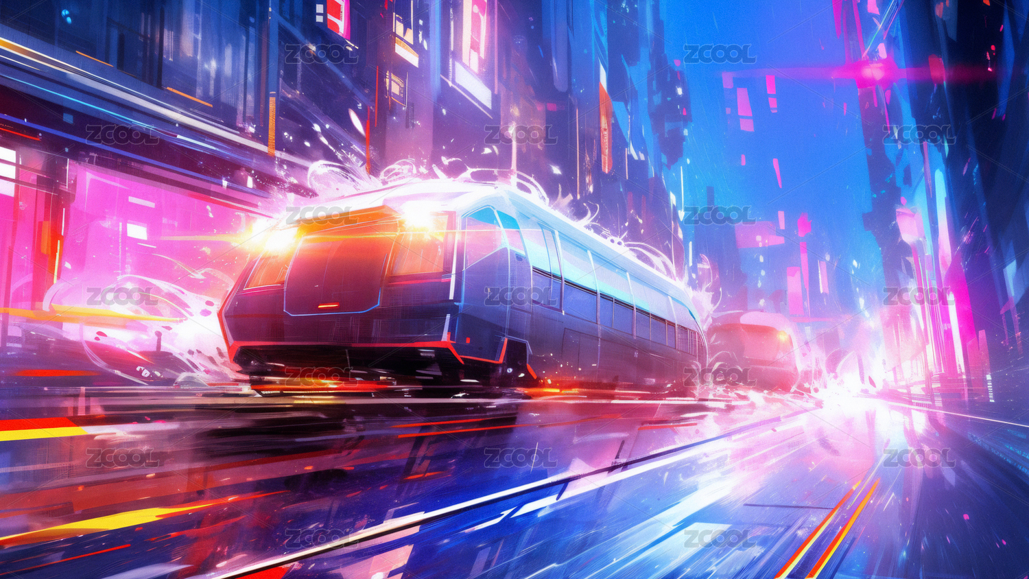 夕陽下的上海浦東新區(qū)的磁懸浮列車和市區(qū)CBD遠景