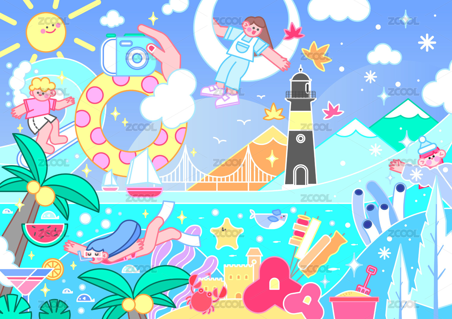 體育人物-運動項目矢量扁平插畫-網(wǎng)球羽毛球乒乓球排球