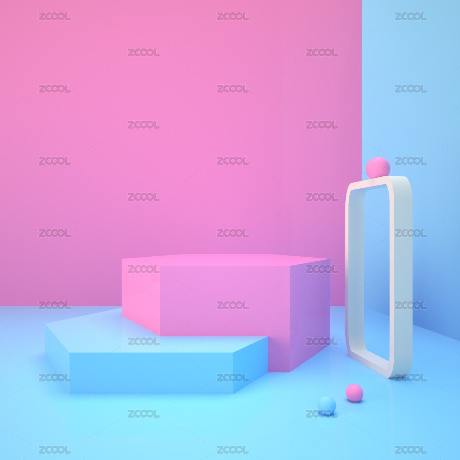 粉藍(lán)簡(jiǎn)約幾何多用電商促銷(xiāo)立體擺臺(tái)海報(bào)背景模板平面設(shè)計(jì)