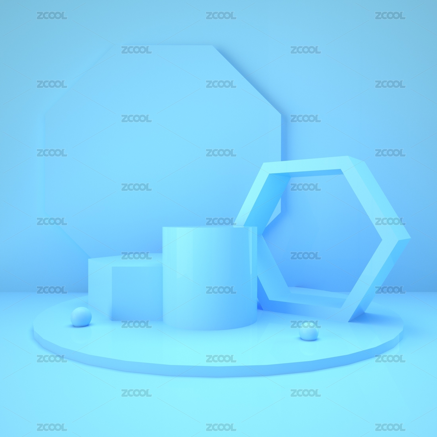 清新藍(lán)色簡(jiǎn)約多擺臺(tái)電商促銷(xiāo)立體海報(bào)背景模板平面設(shè)計(jì)