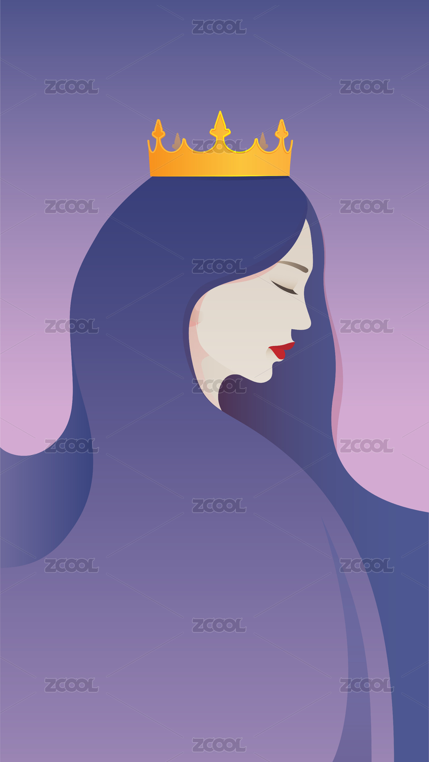 戴王冠的女子側臉矢量閃屏插畫