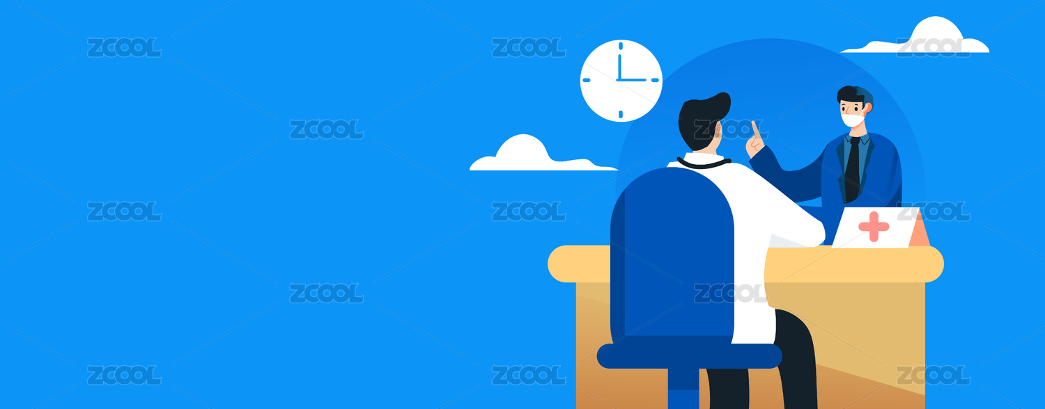 卡通手繪醫(yī)療男子體檢問診藍色海報閃屏插畫