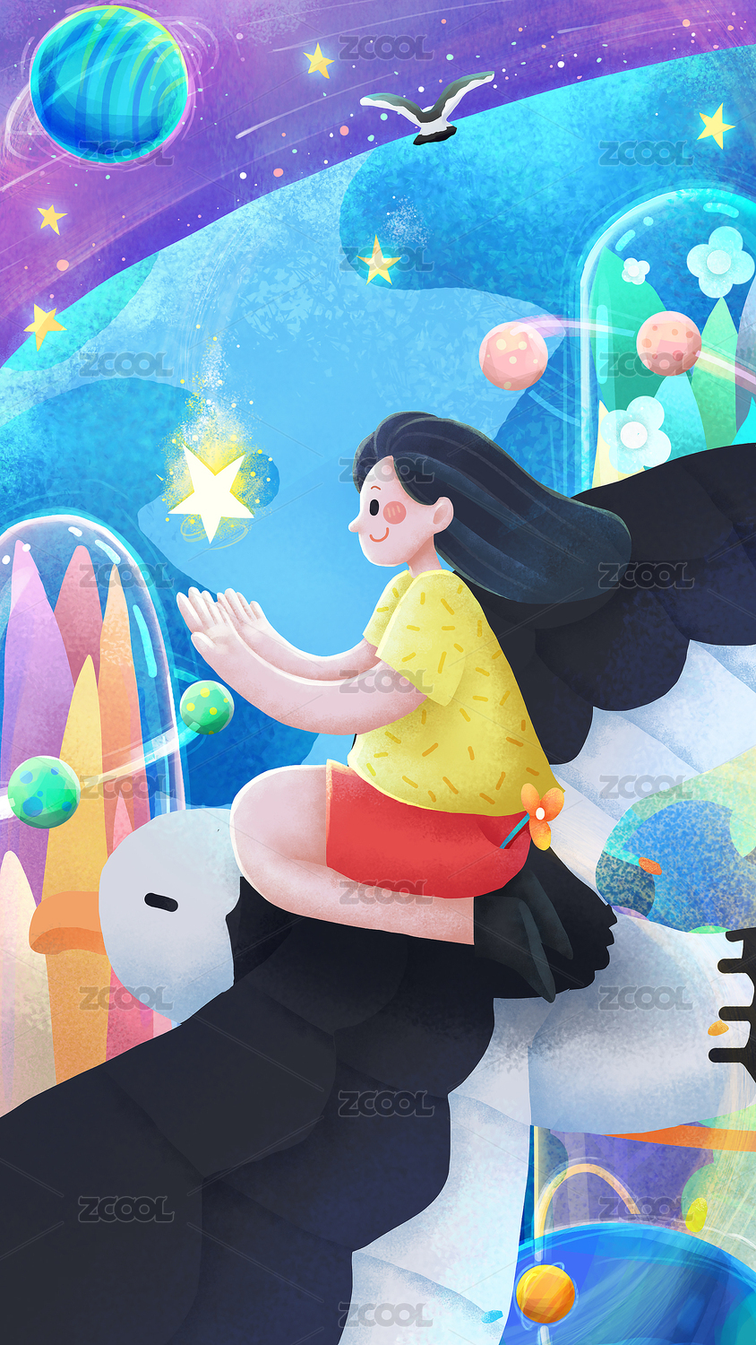鎖屏壁紙閃屏插畫少女星星