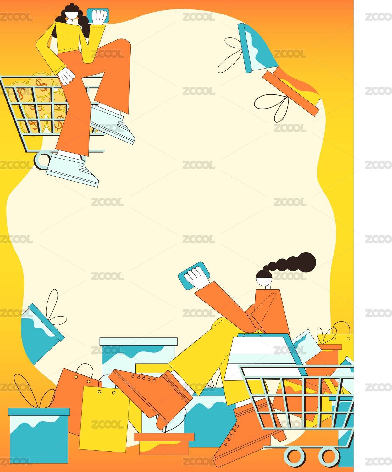 電商購物網(wǎng)購主題海報閃屏插畫背景素材