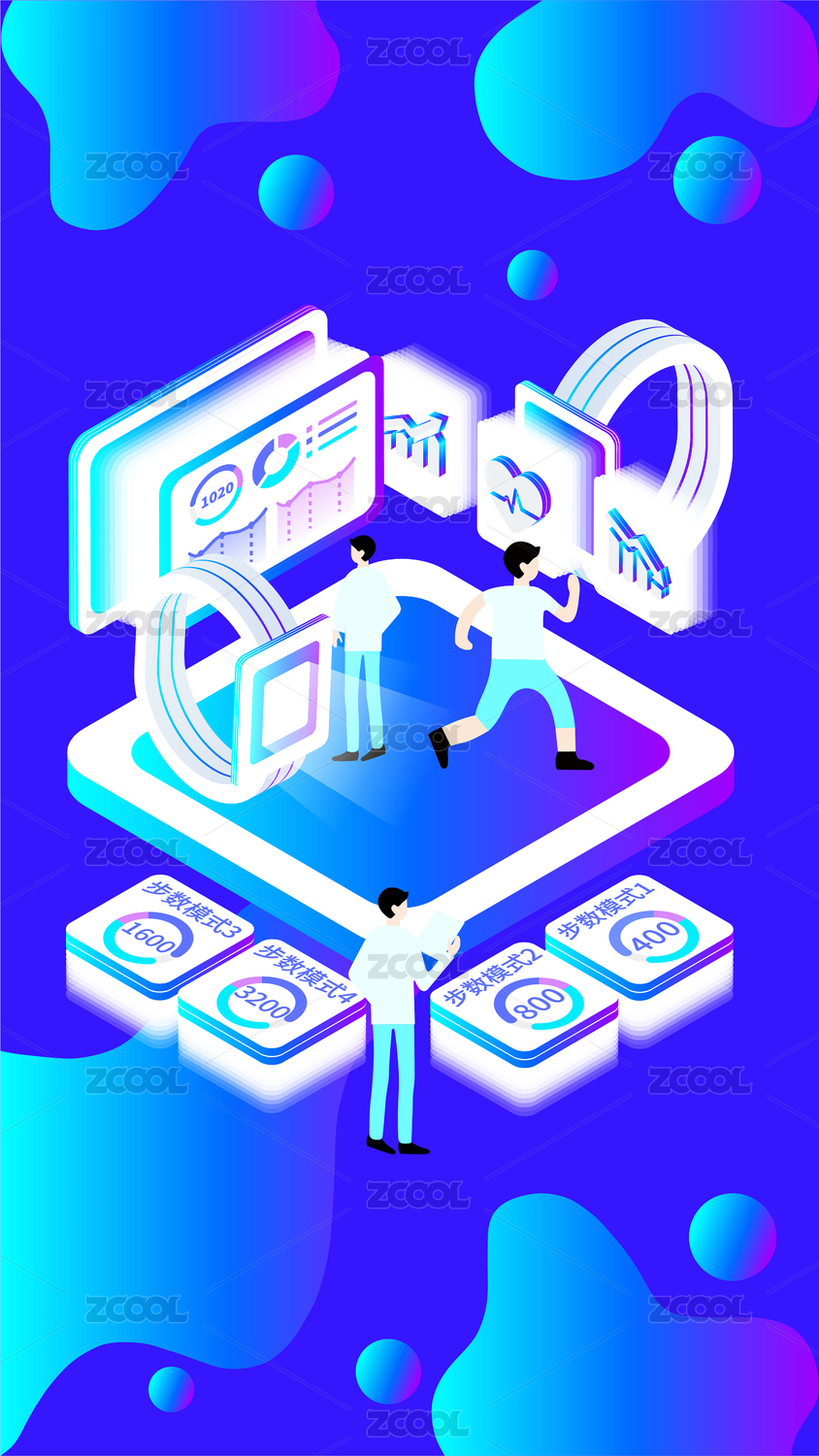 跑步健身科技手環(huán)智能監(jiān)測手機閃屏頁設計