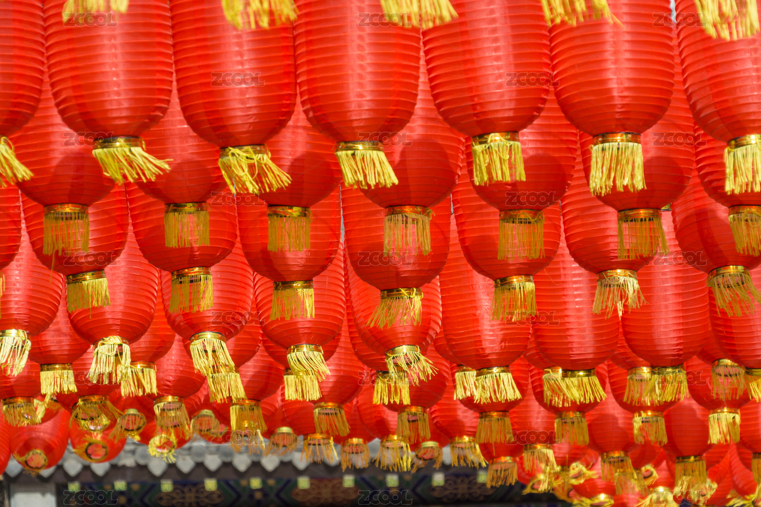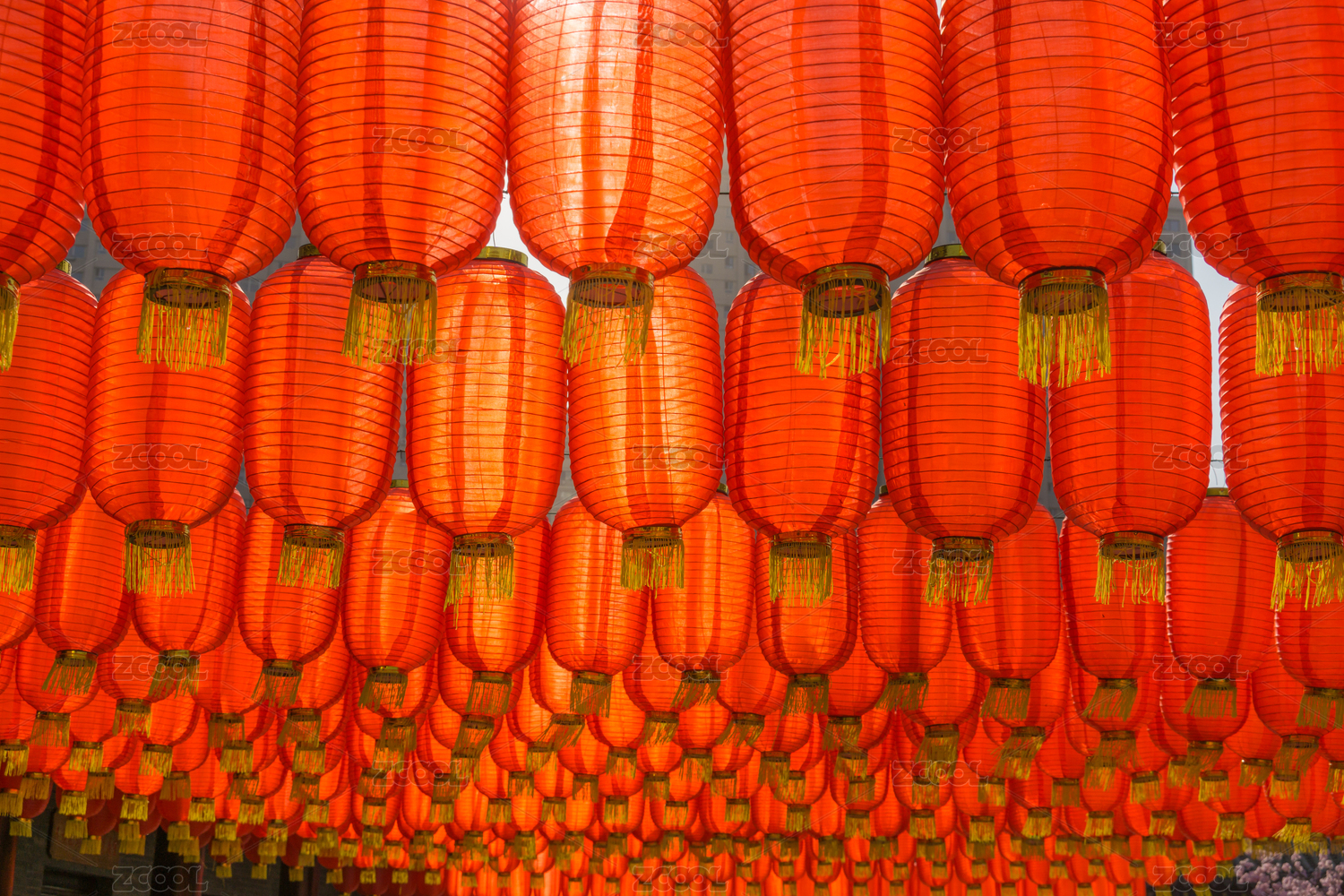 陽光下一大片飄舞的紅燈籠