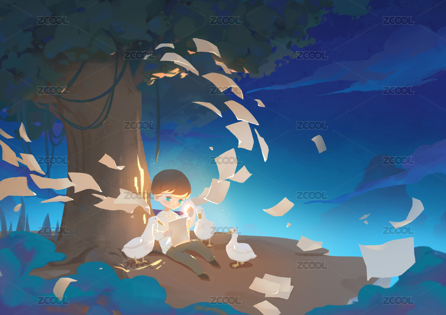 飄舞的藍(lán)色漸變絲帶