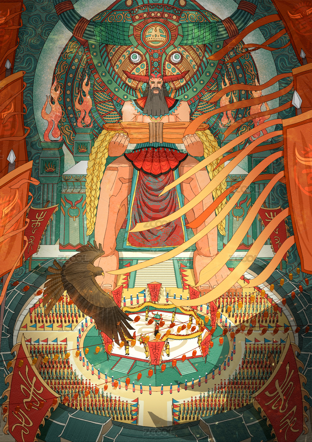 蚩尤九黎雄鷹高飛旗幟飄舞的祭祀慶典