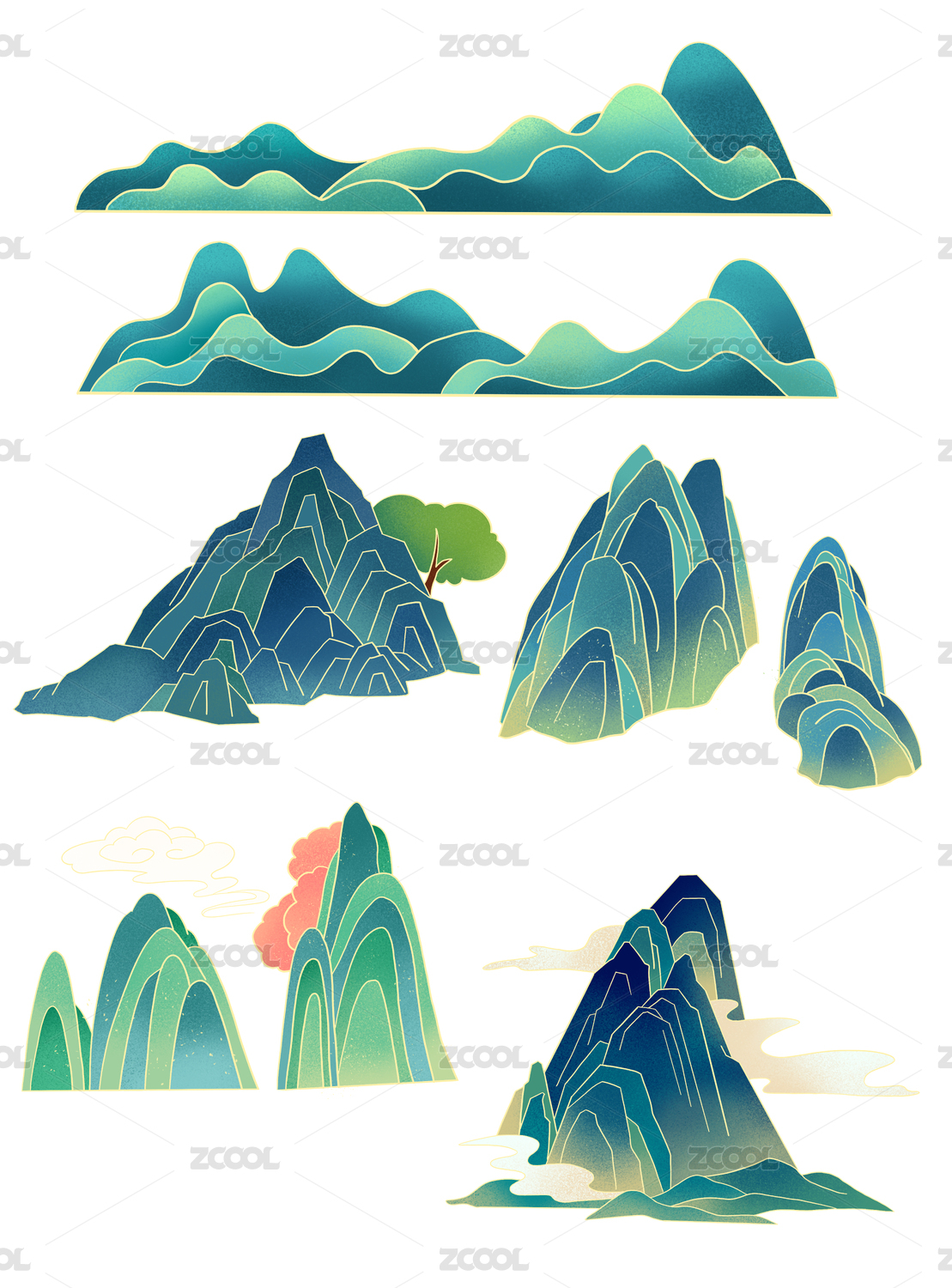 中秋節(jié)金月祥云宮殿山流云月亮國潮插畫