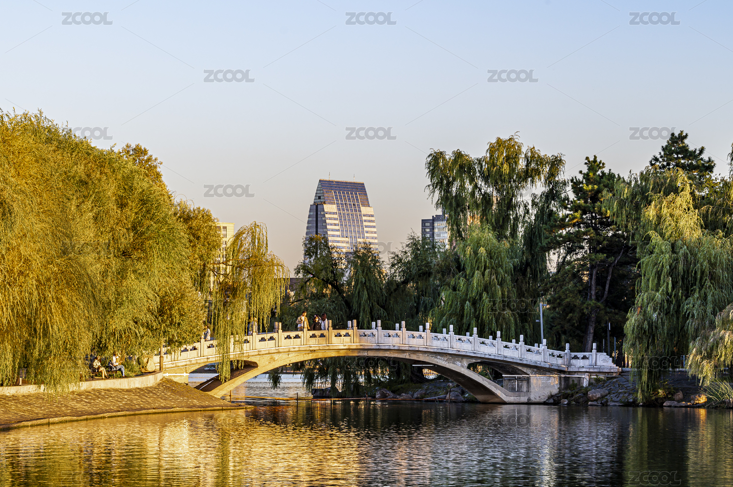 落日余暉下的中國長春南湖公園風景