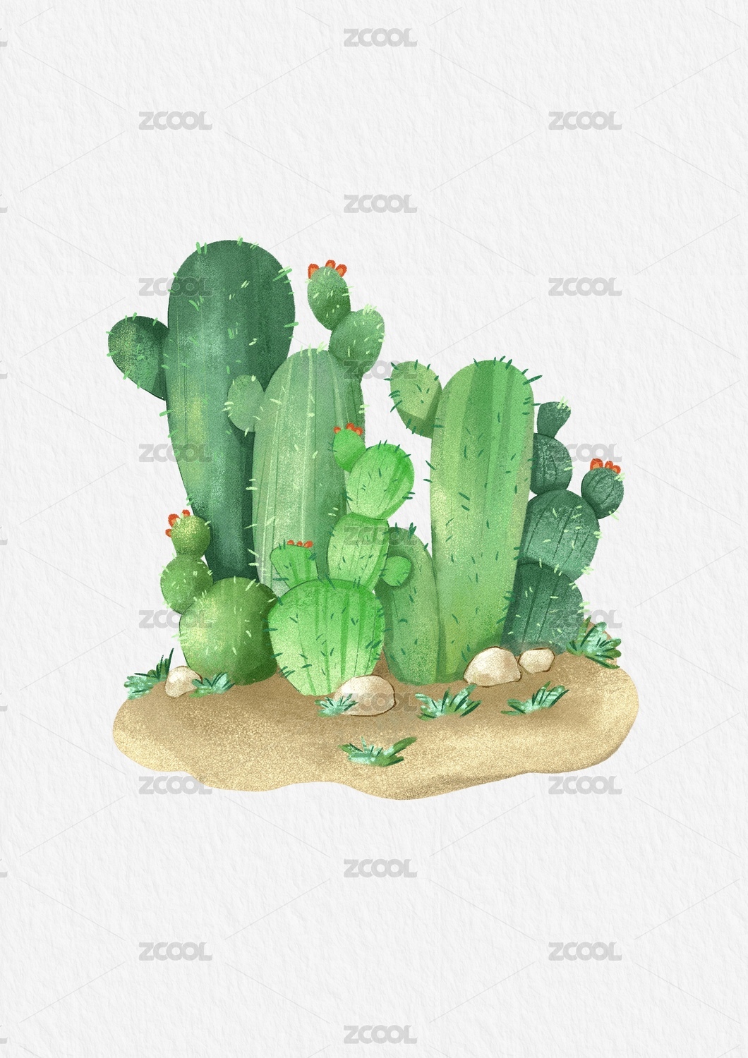 板繪水彩仙人掌植物小場(chǎng)景