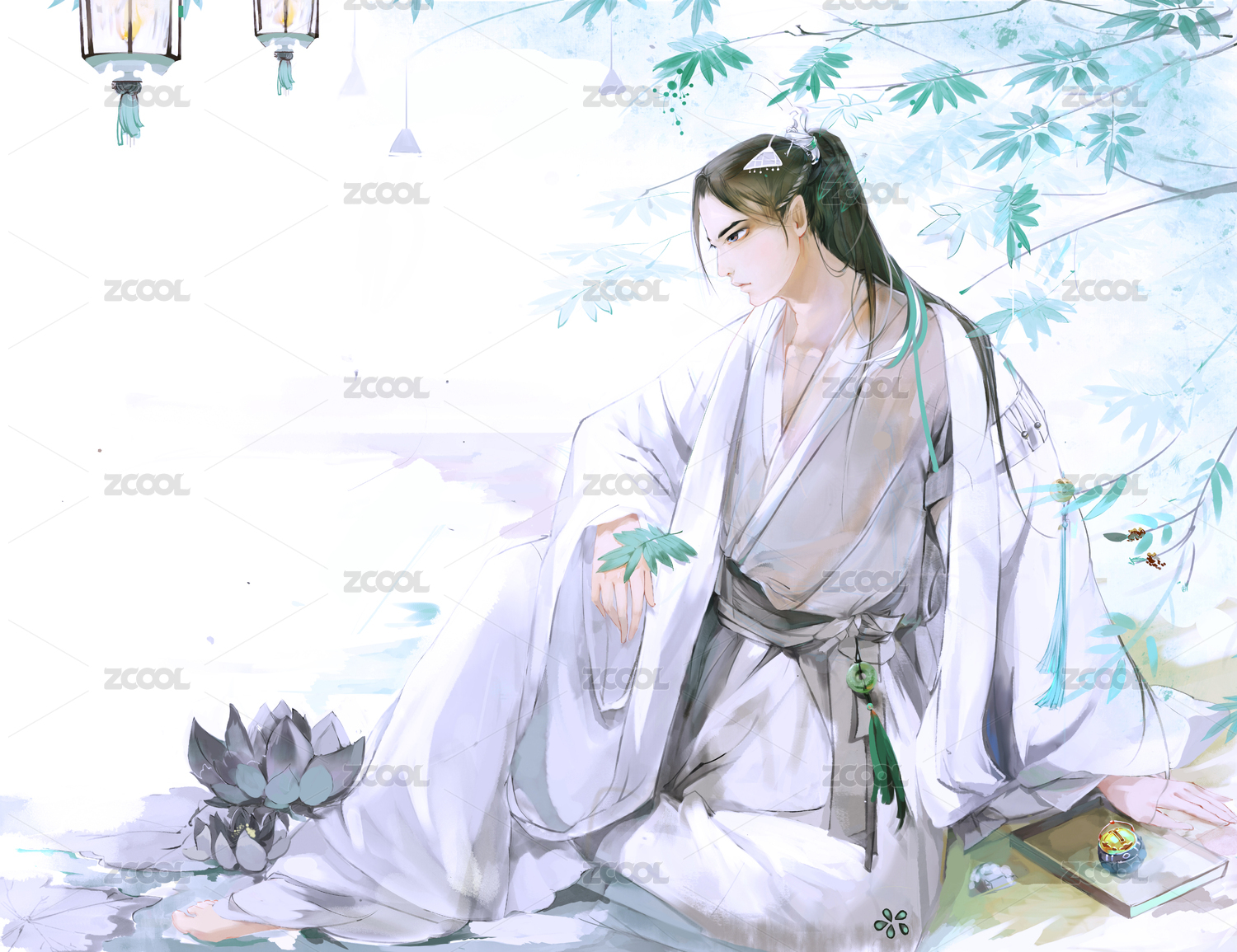 四季之春季古風(fēng)男子坐在樹(shù)下思考著什么