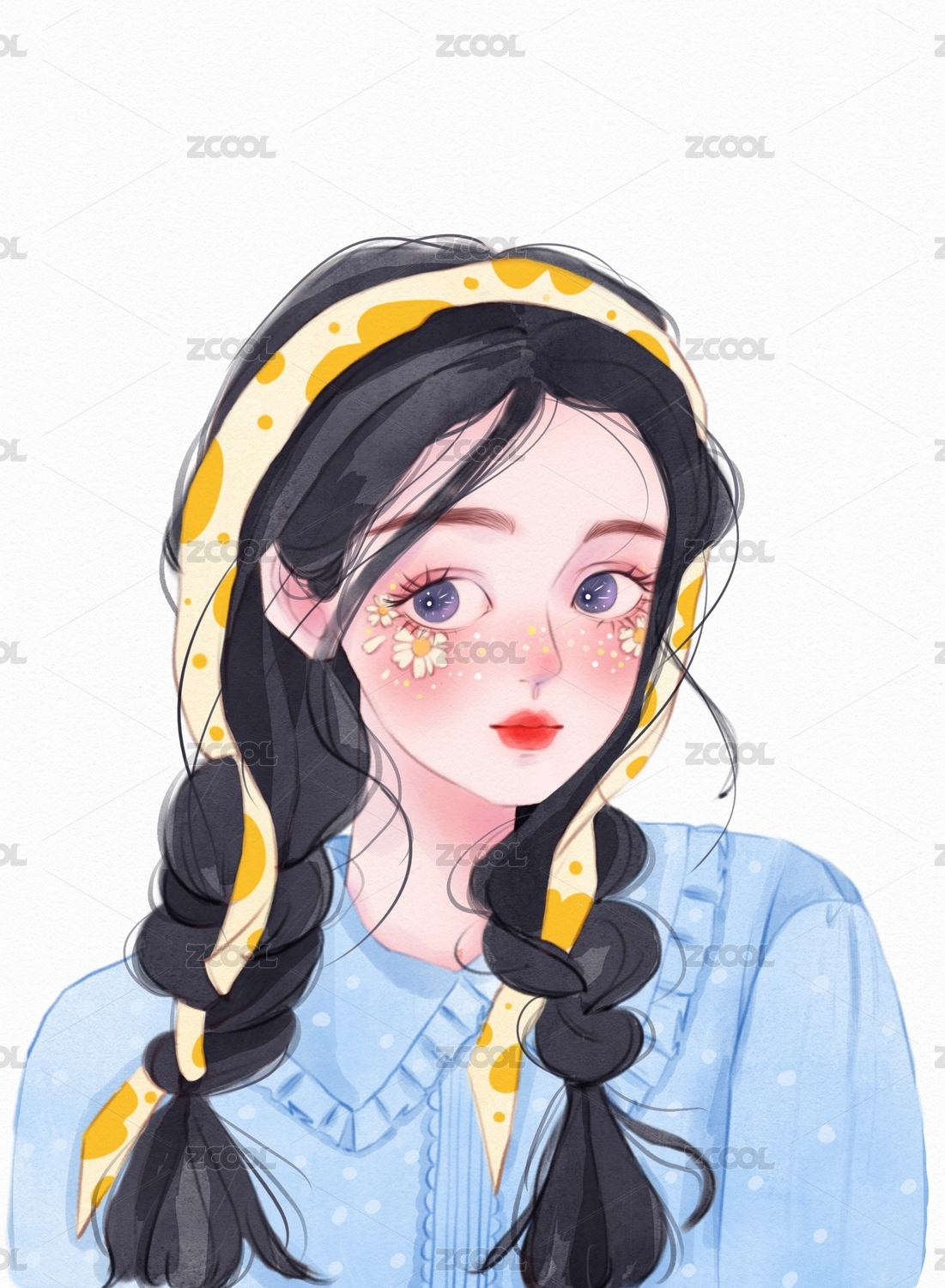 清新系小雛菊少女 板繪仿水彩