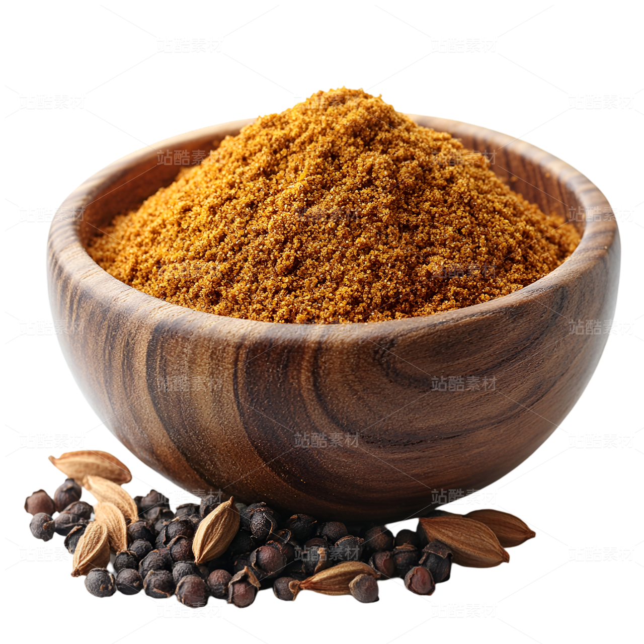 木碗中的香料粉末與籽實