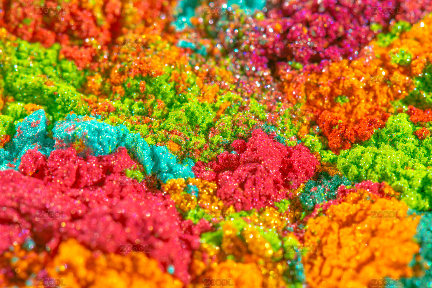 多彩粉末堆疊混合成彩色的光斑