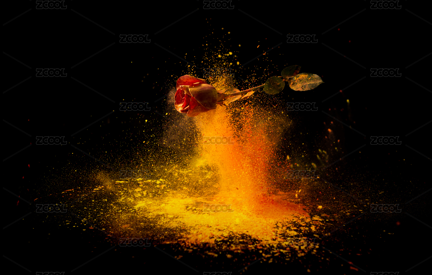 玫瑰花和彩色粉末爆炸效果