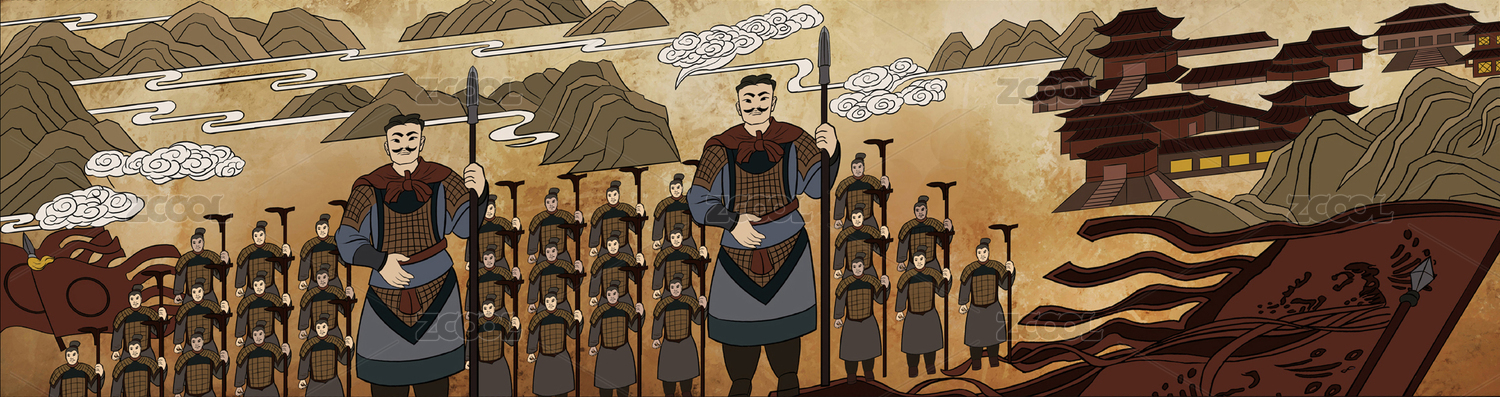 國潮秦朝復古當盧馬圖案矢量手繪插畫線稿