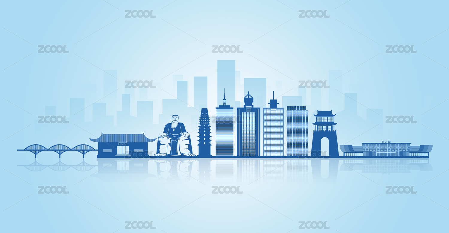 中國(guó)四川省樂山市地標(biāo)建筑剪影背景素材