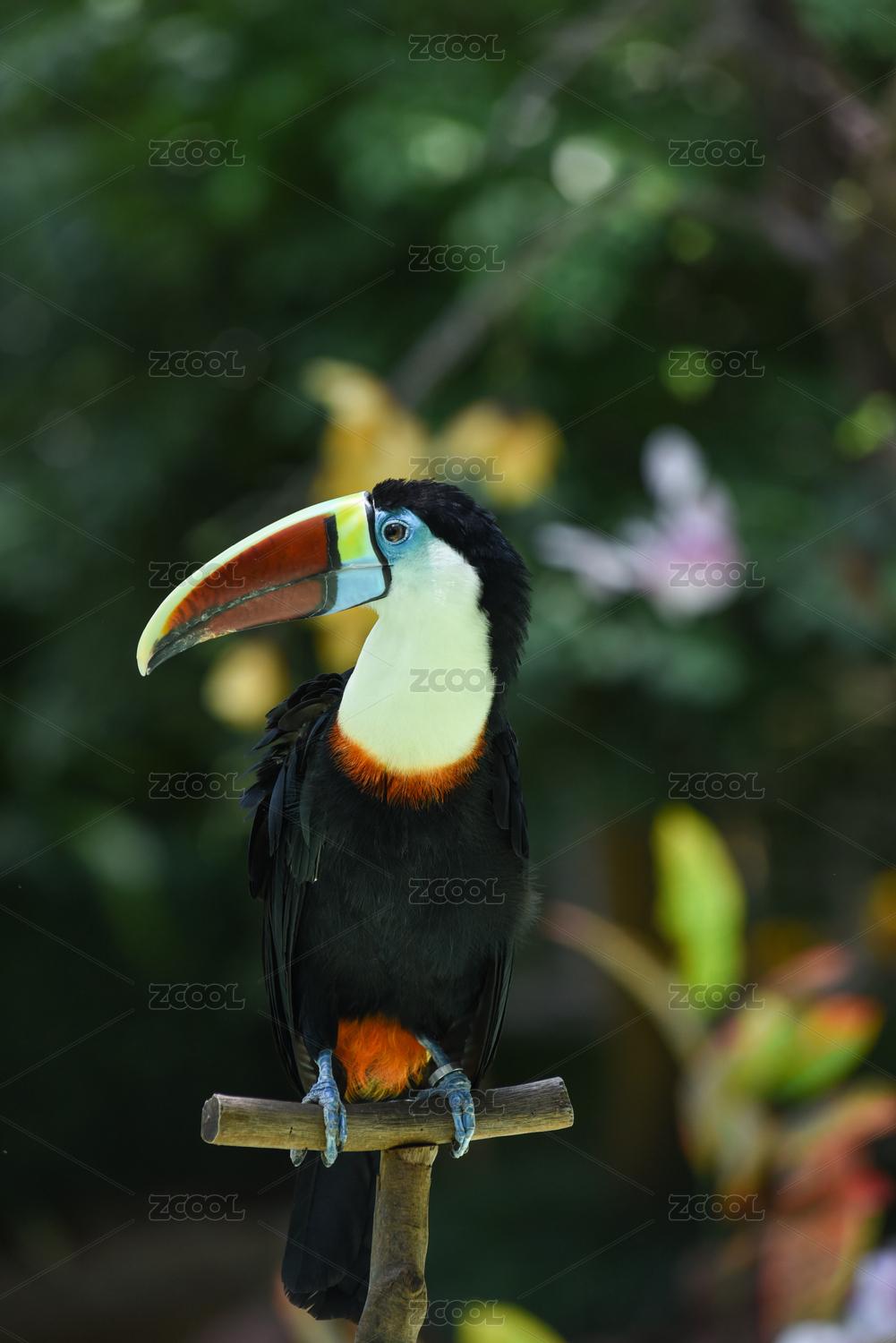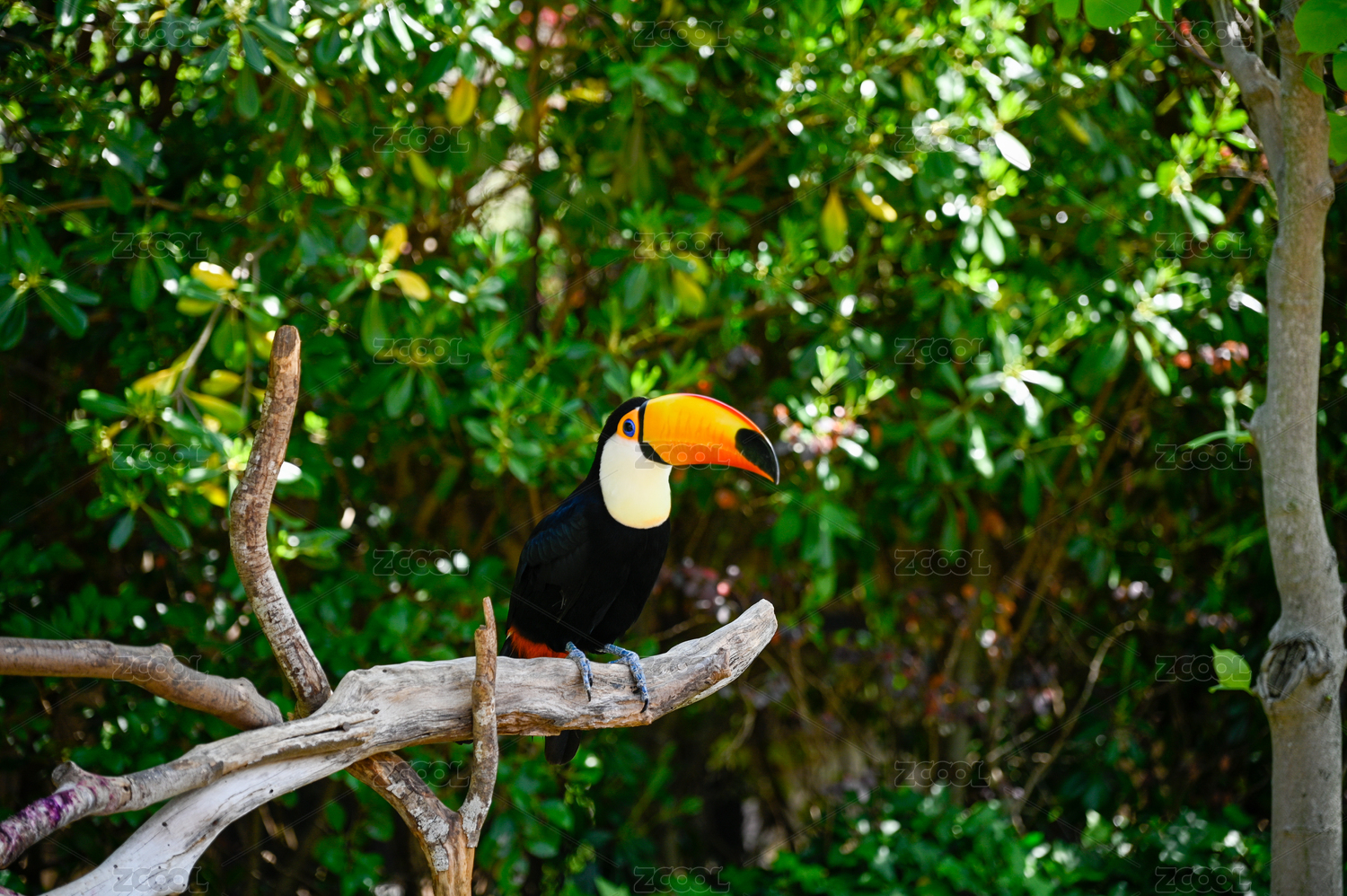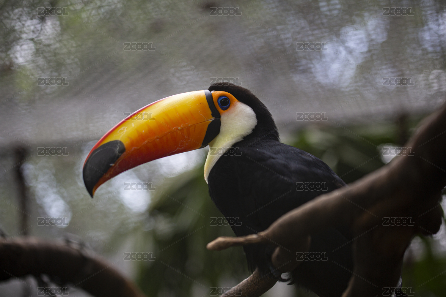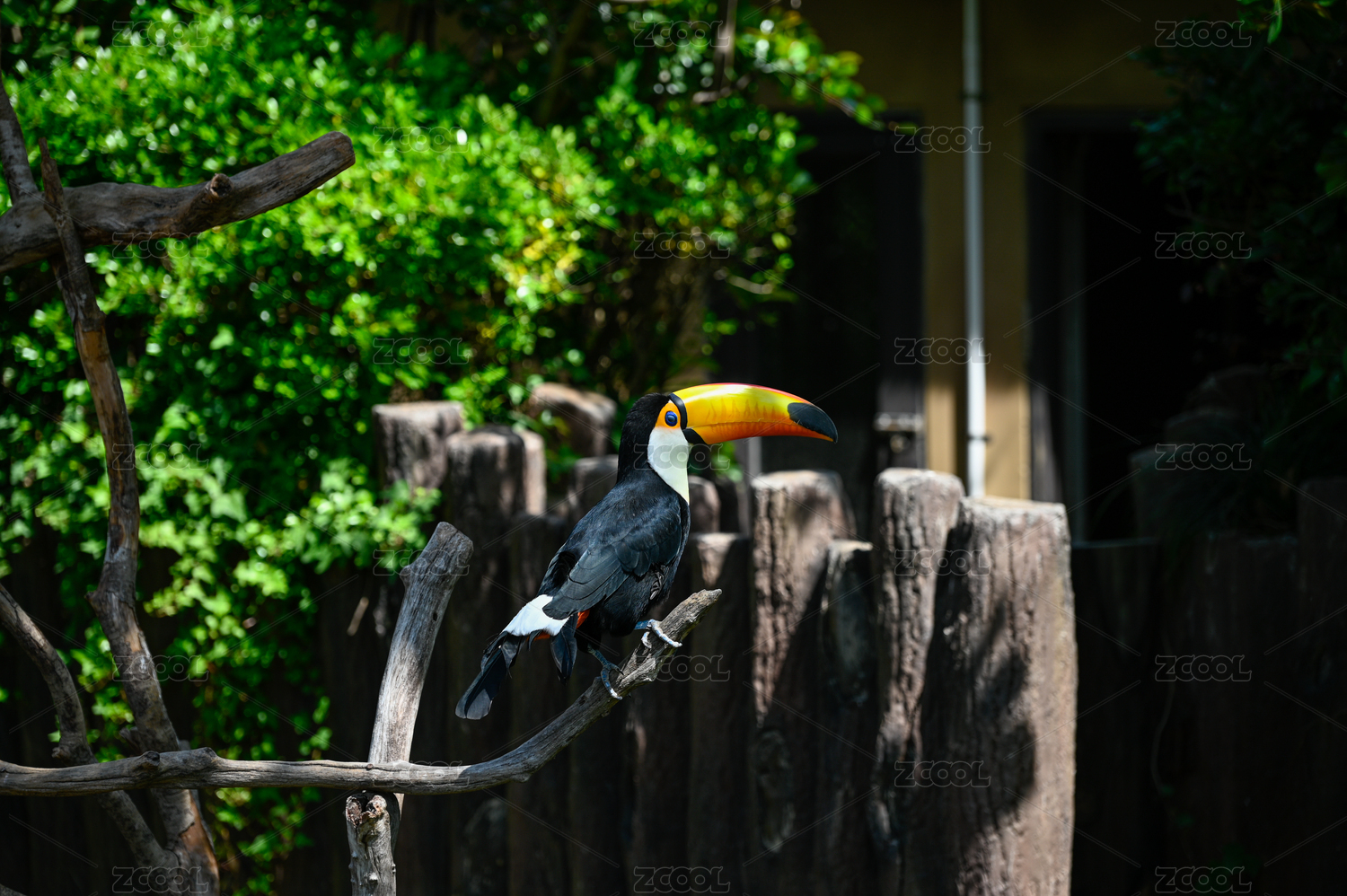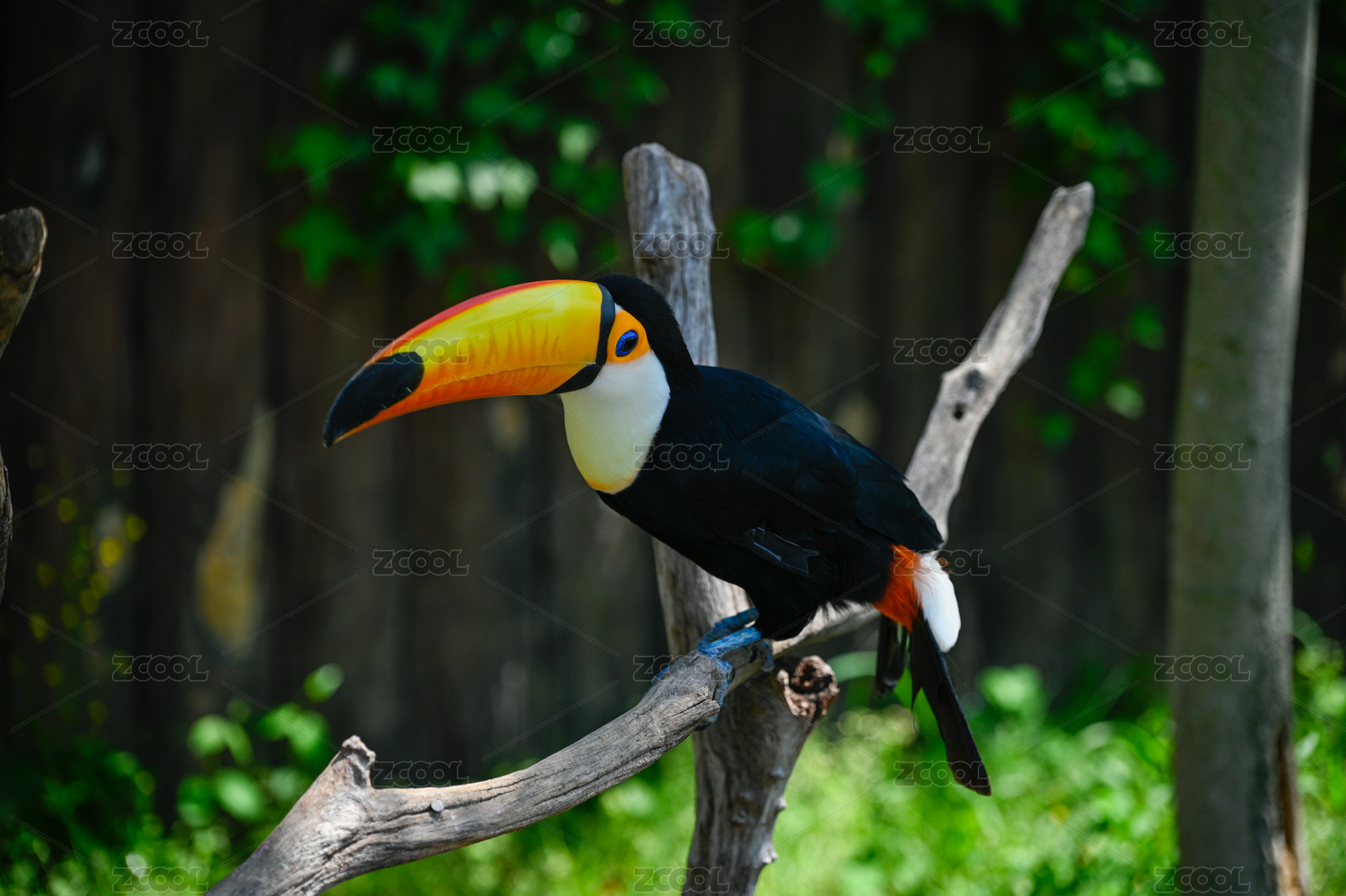 一只擁有巨型喙的巨嘴鳥停留在樹枝上休息