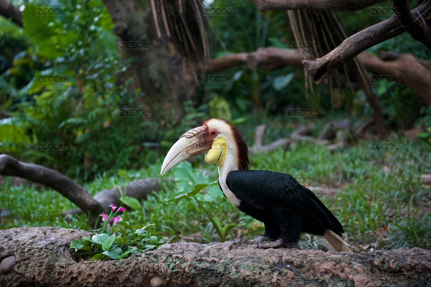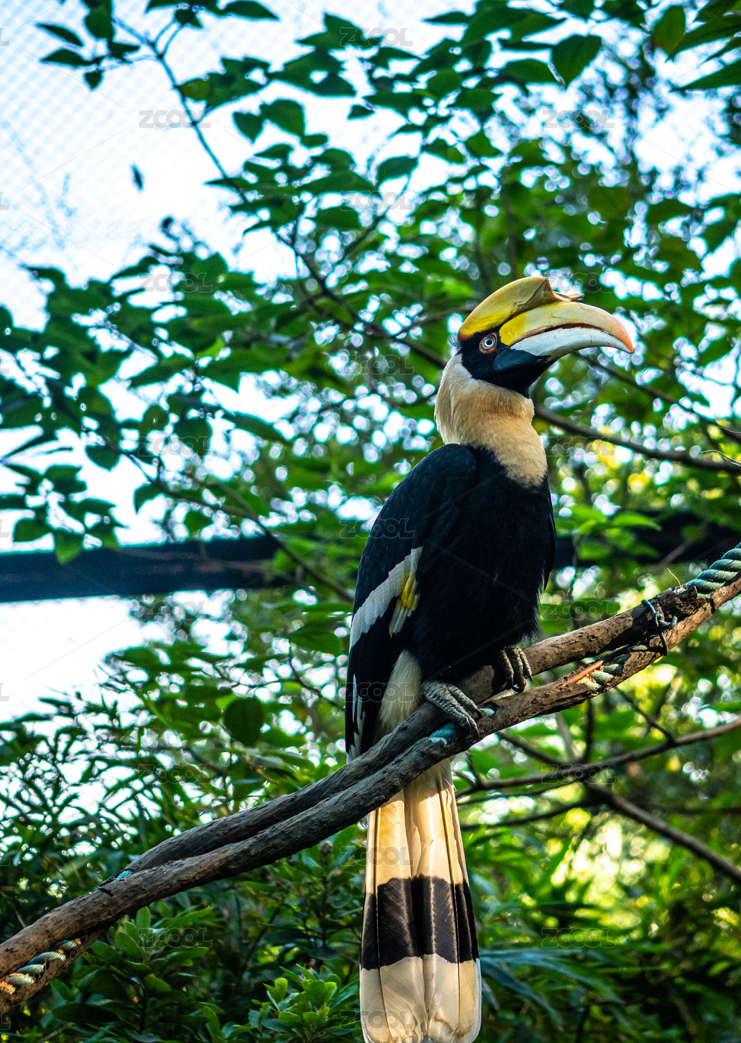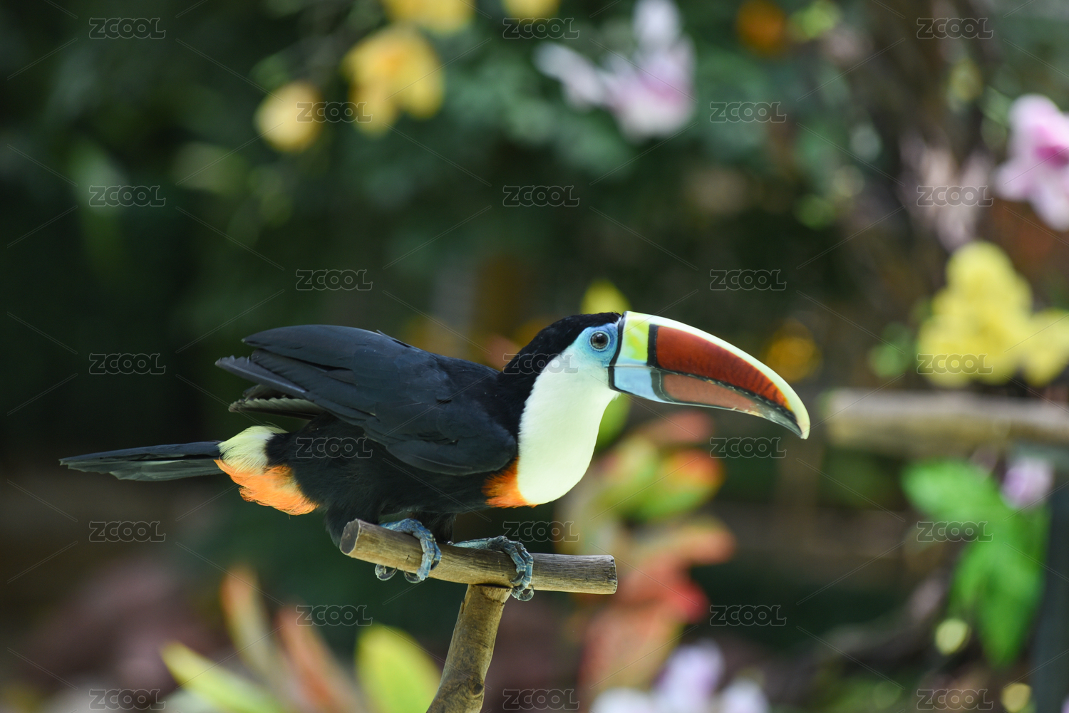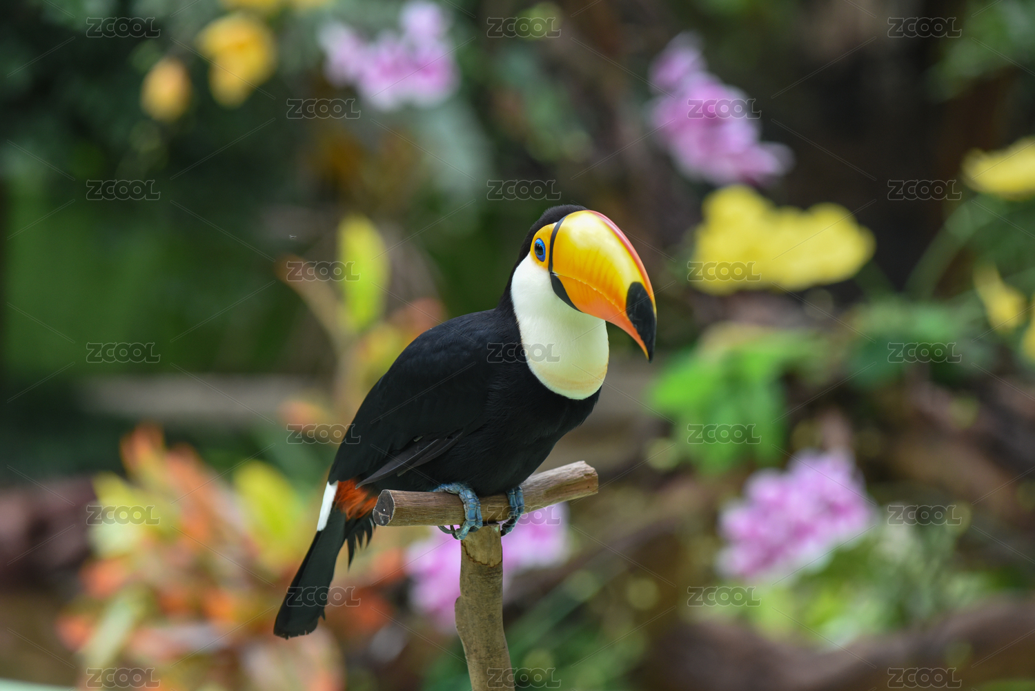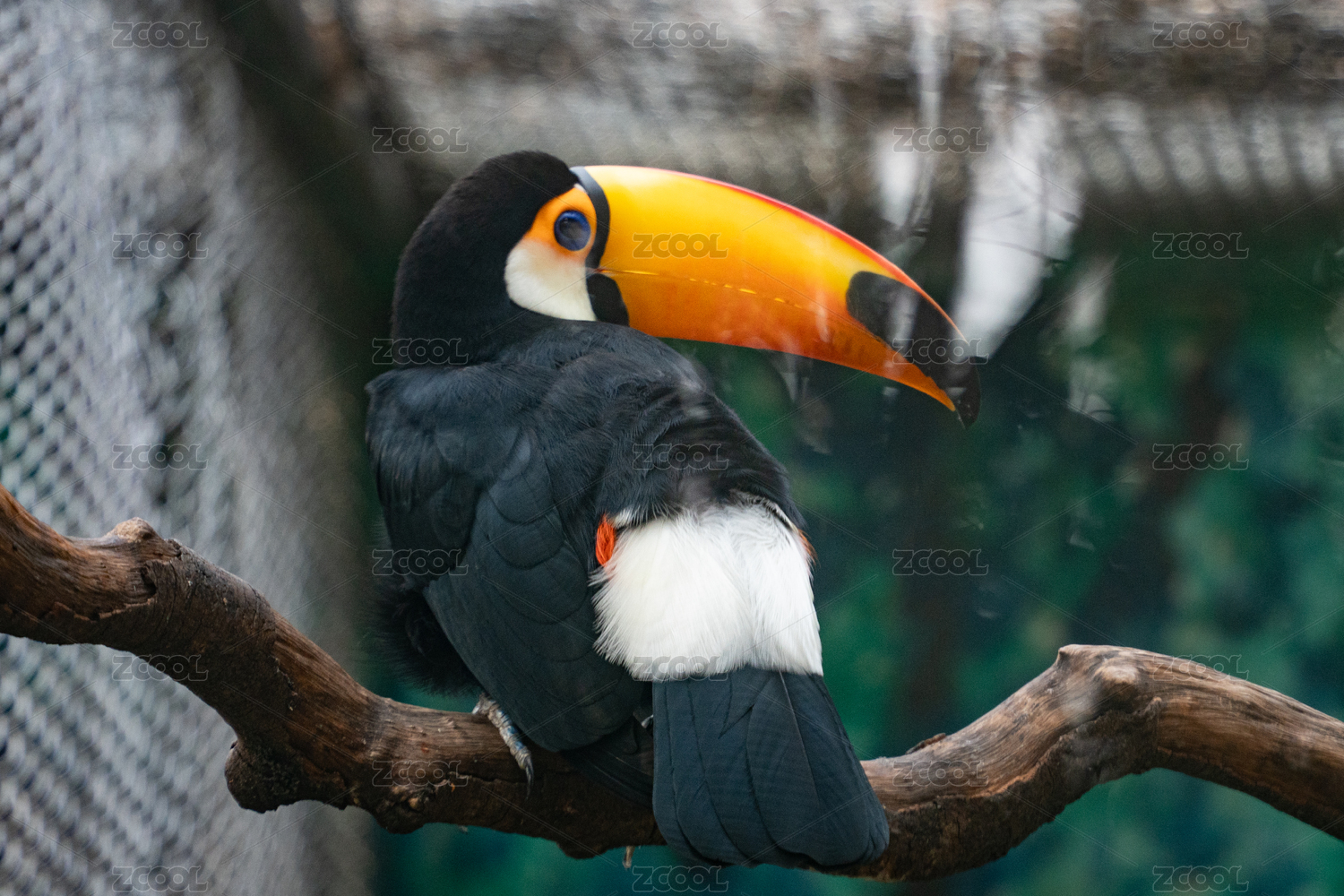 一只擁有巨型喙的巨嘴鳥停留在樹枝上休息
