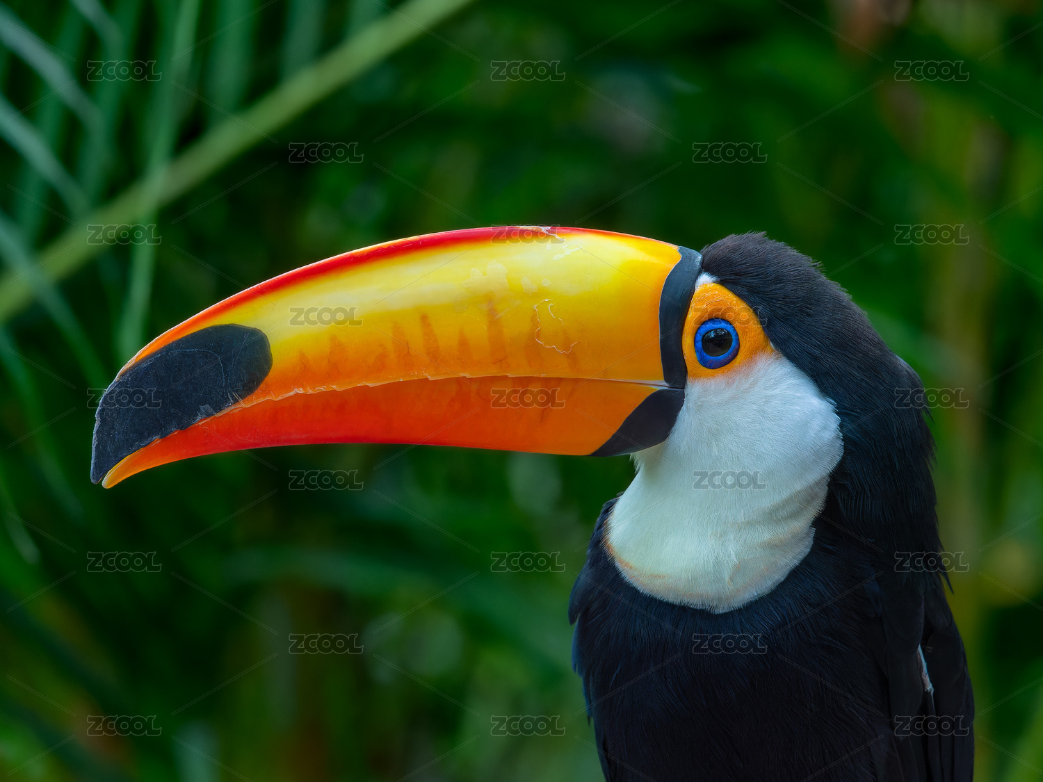 熱帶植物中的五彩金剛鸚鵡和巨嘴鳥