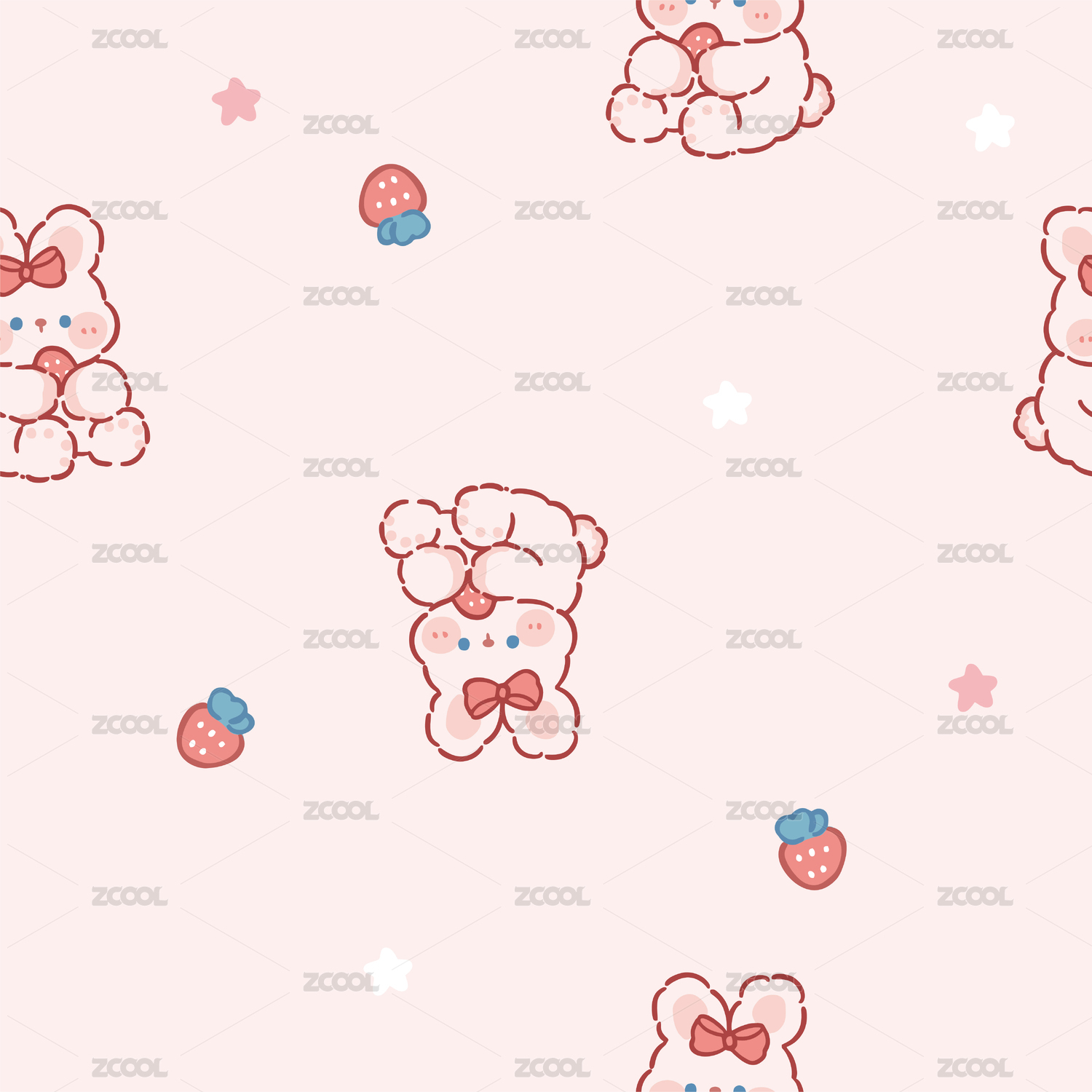 兒童卡通可愛草莓小兔子無縫四方連續(xù)背景