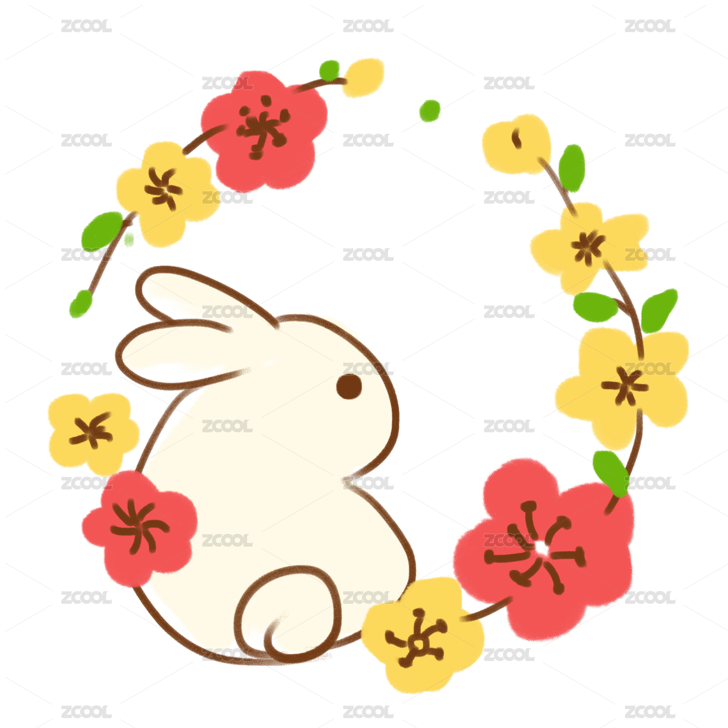 可愛手繪小兔子與鮮花
