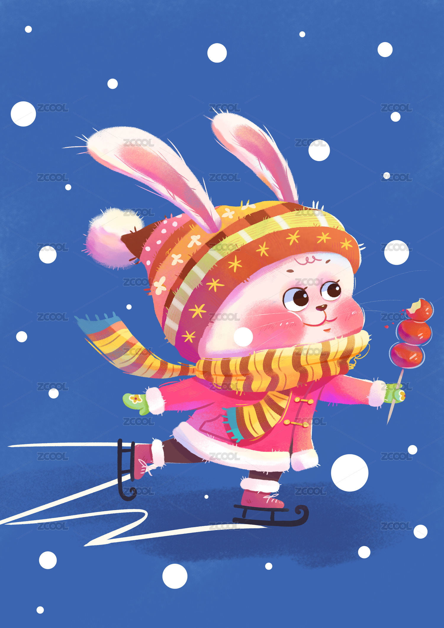 拿著冰糖葫蘆在滑雪的小兔子