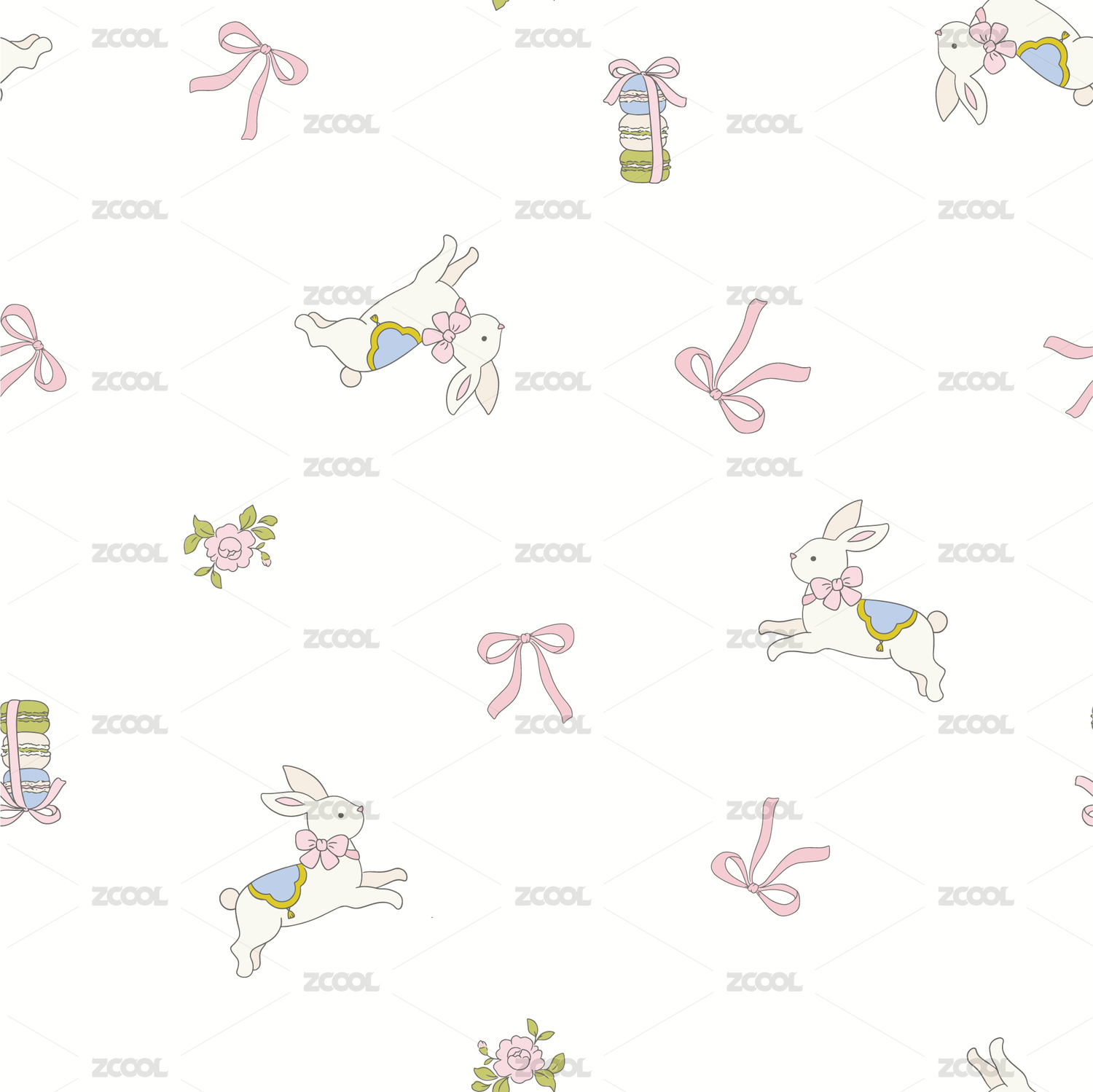 兒童復(fù)古手繪小兔子馬卡龍無縫印花