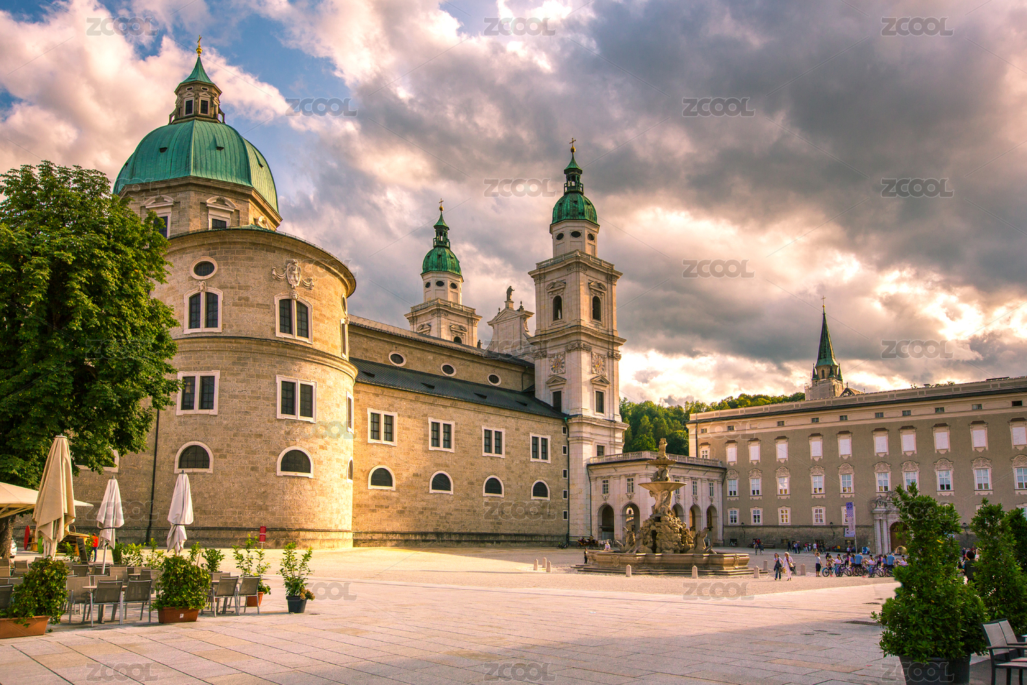 奧地利薩爾茨堡古城中心的主教廣場(chǎng)建筑景觀