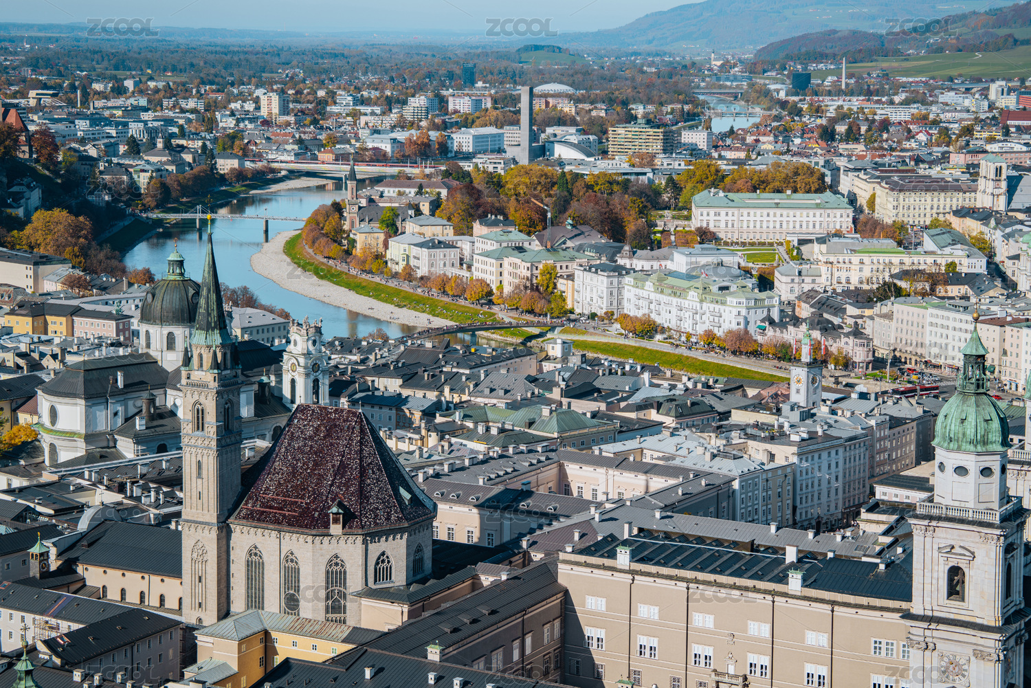 奧地利薩爾茨堡白天的城市風(fēng)光